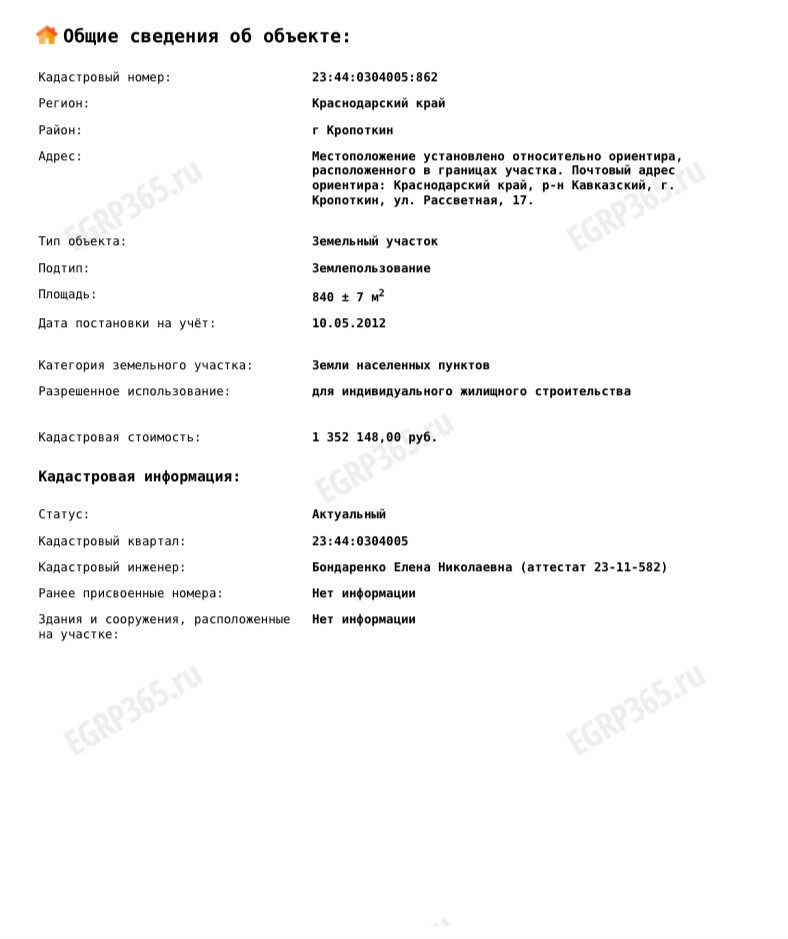Кадастровый номер участка: 23:44:0304005:862