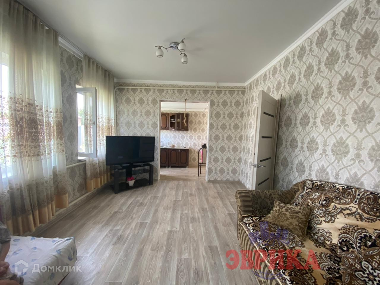 Площадь 55 кв .м., в доме 3 жилые комнаты, кухня, совмещённый сан узел.