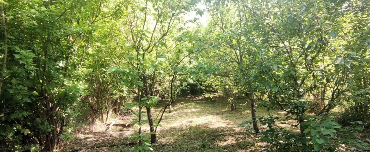 На участке земли есть насаждения фруктовых деревьев и кустарников.
