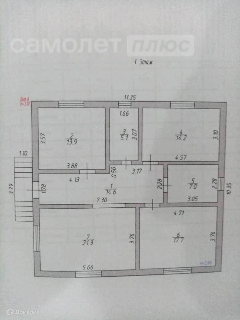 · в доме: прихожая, кухня-гостиная 21.3 кв.м., 3 изолированные комнаты (17.7; 14.2; 13.9 кв.м.) с/у 7.0 кв.м., отдельная котельная 5.1 кв.м. Дом в предчистовой отделке.