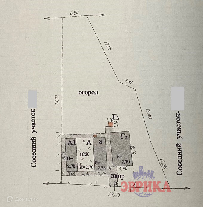 Двор забетонирован, огорожен забором из металлопрофиля.