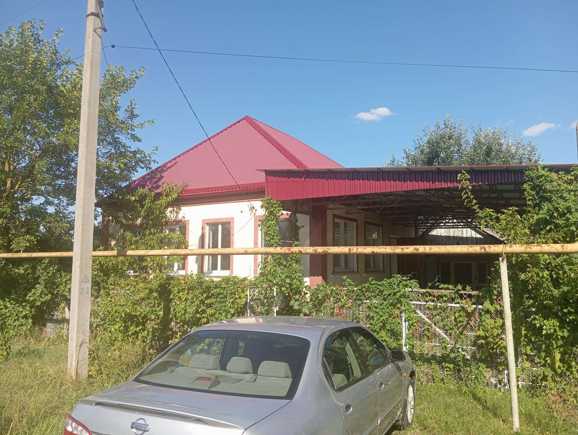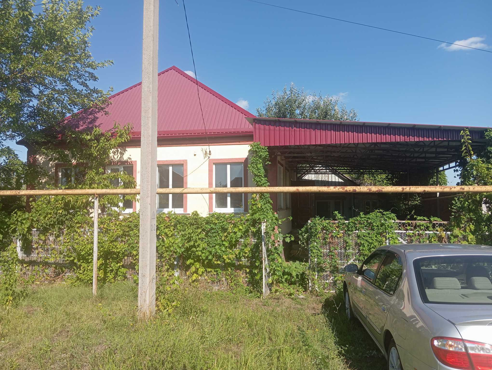 Во дворе навес. Крыша и фасад дома также отремонтированы: крыша новая, фасад декоративная штукатурка.