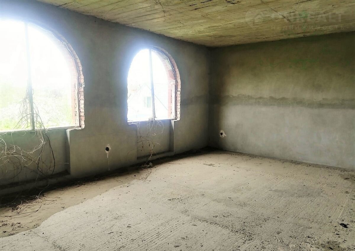 В доме вас ждут 7 просторных комнат, кухня размером 50 кв.м., спортзал, бассейн и баня. Высота потолков 3,5 метра создаст ощущение простора. Стены уже оштукатурены, проведена электропроводка, а прочные монолитные железобетонные перекрытия обеспечивают долговечность. Участок в 17 соток полностью разработан, огораживает высокий кирпичный забор по всему периметру, большая придомовая территория, основная дорога асфальтированная.