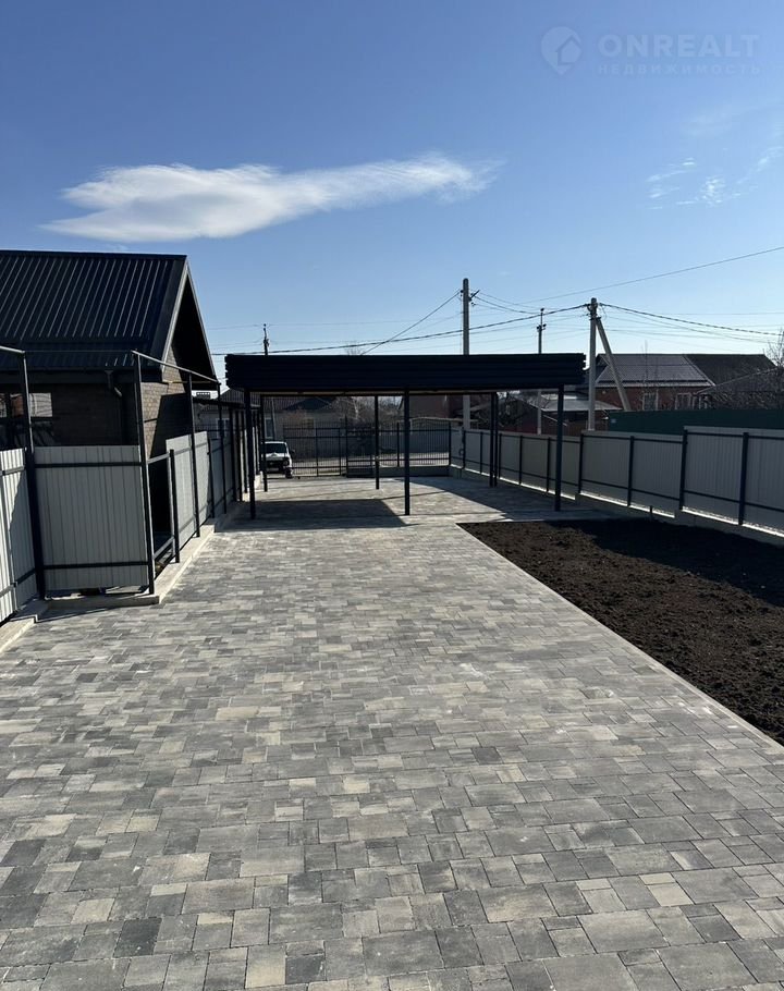Уложено 250 квадратов плитки, сделан качественный навес на 2 машины, откатные ворота.