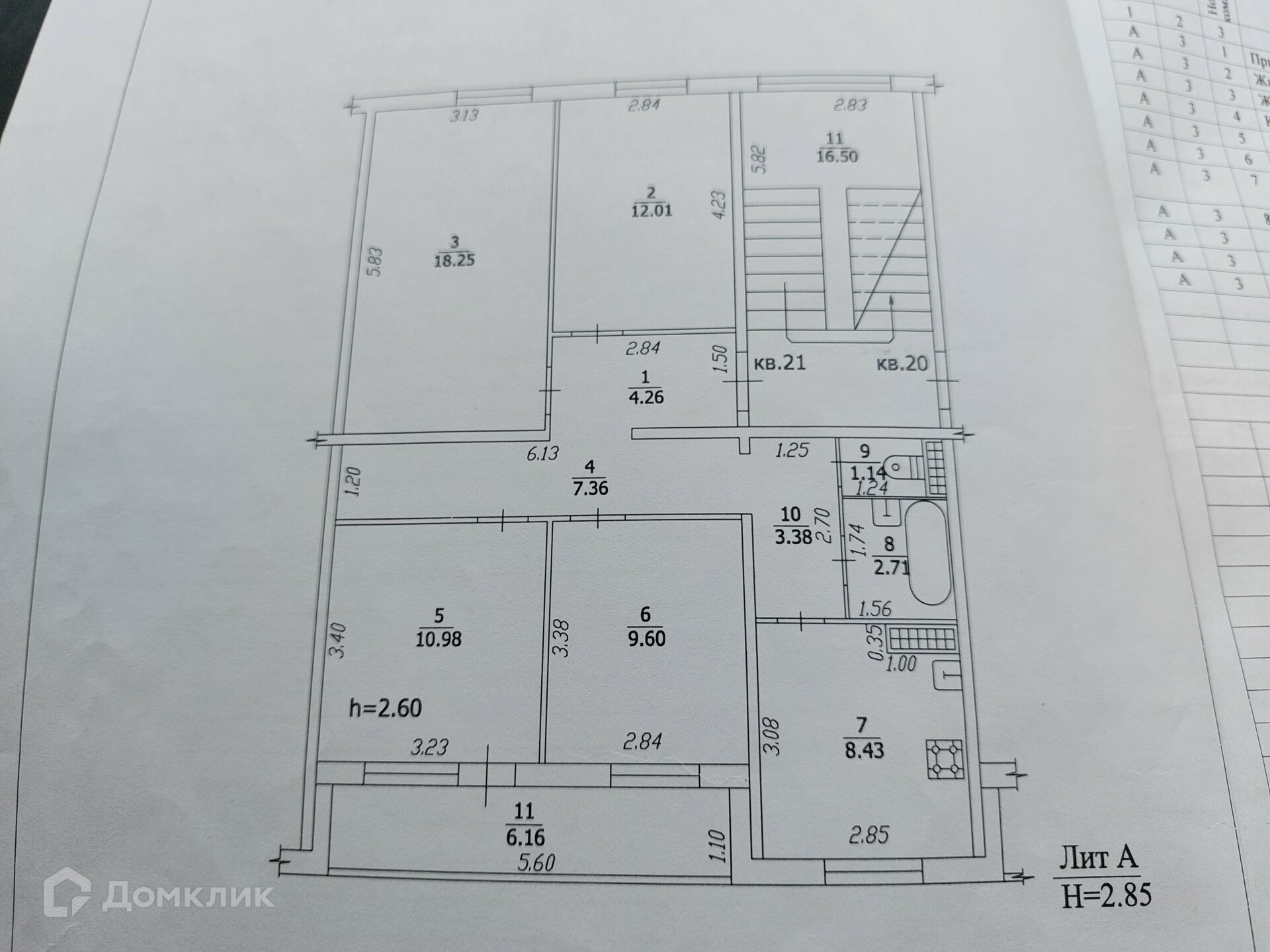 Высота потолков 2.6 м