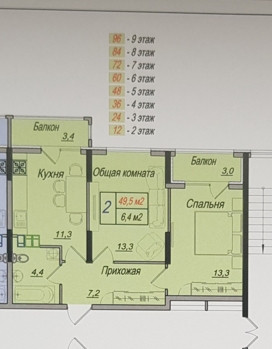 Общая площадь 49.5 м2