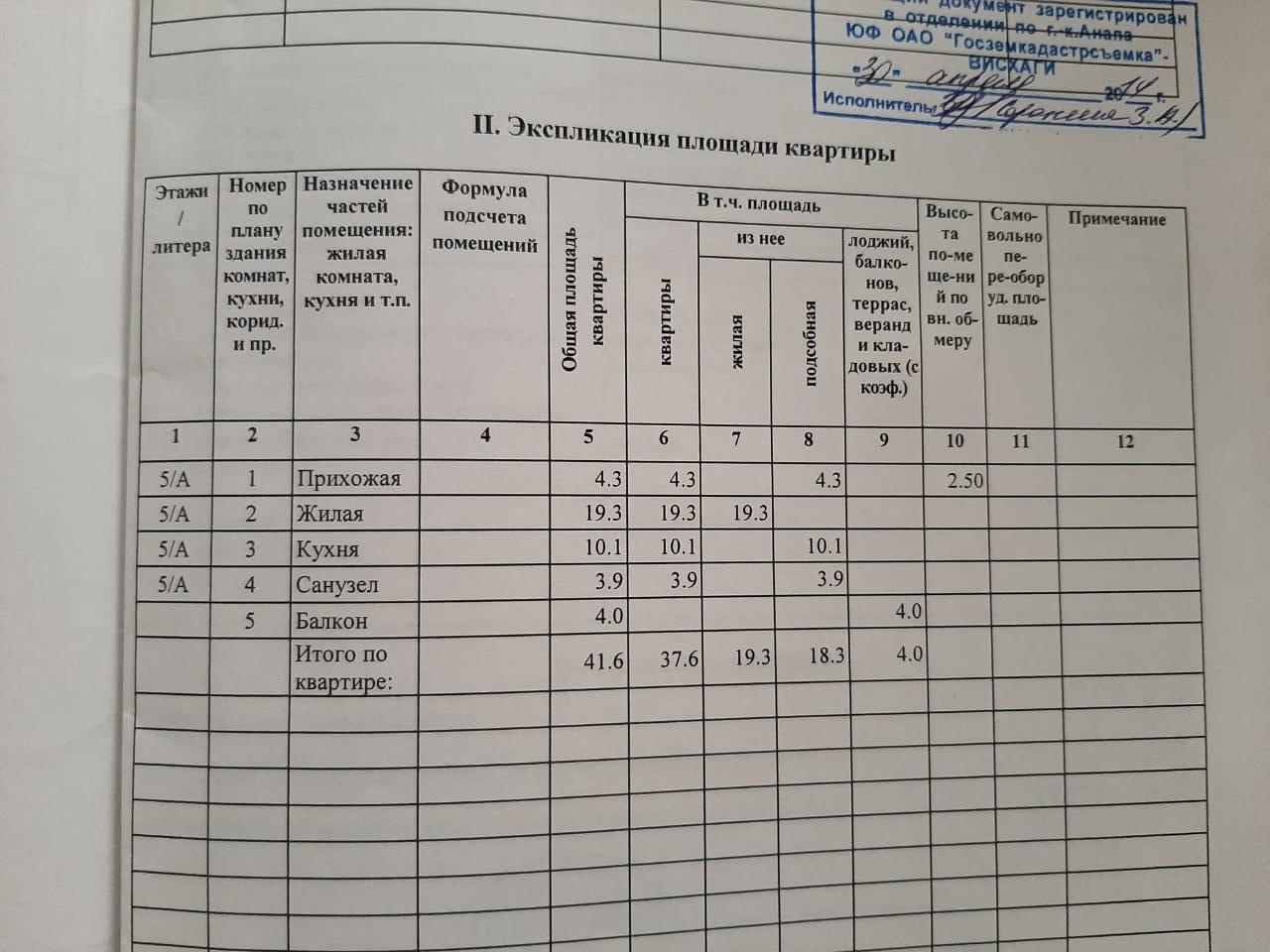Общая площадь 41.6 м2