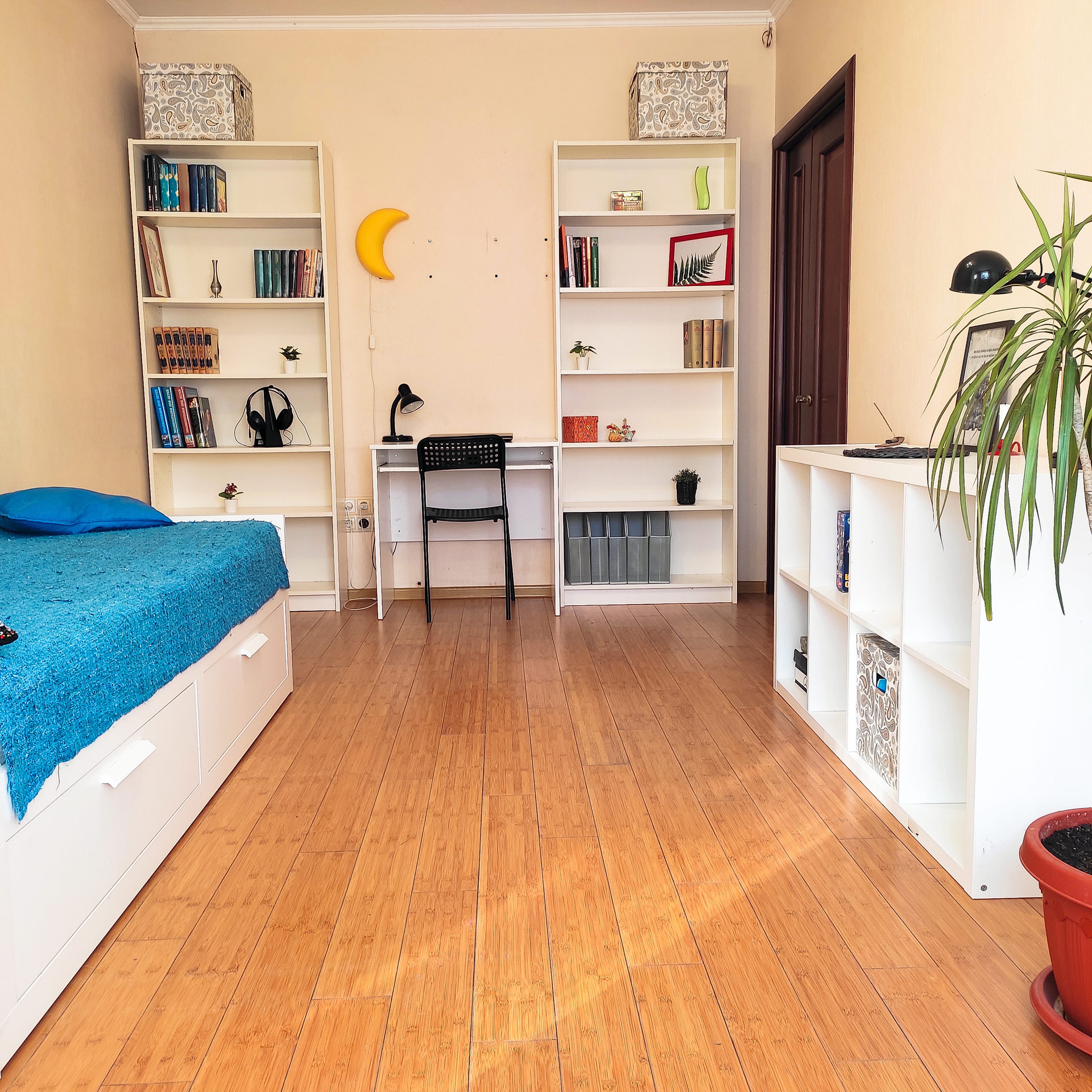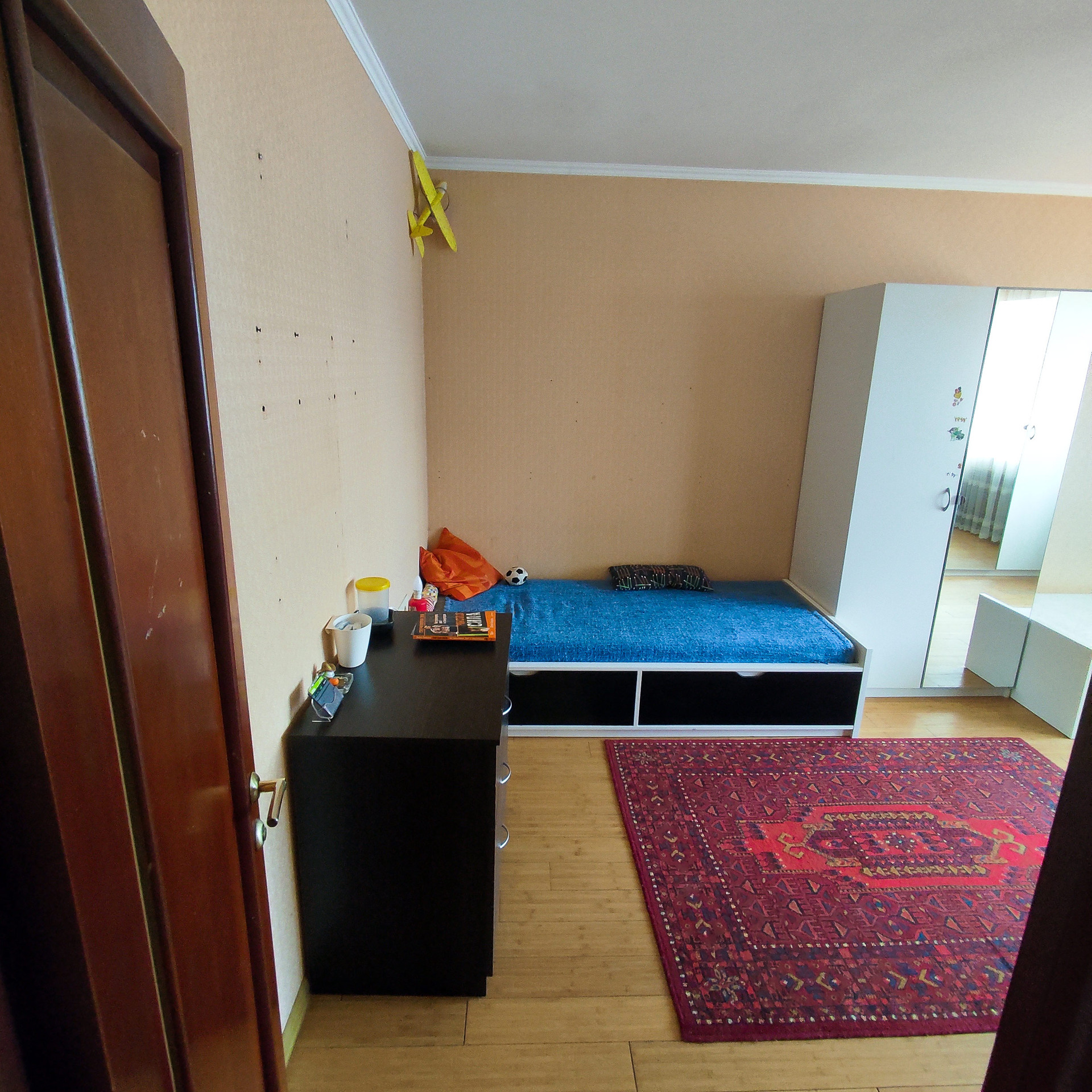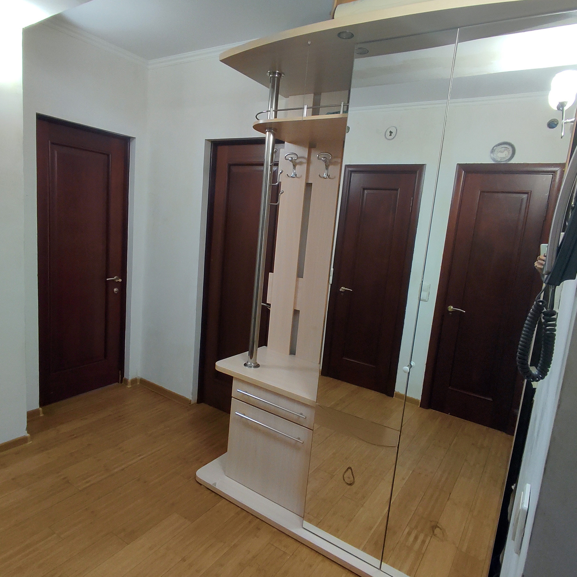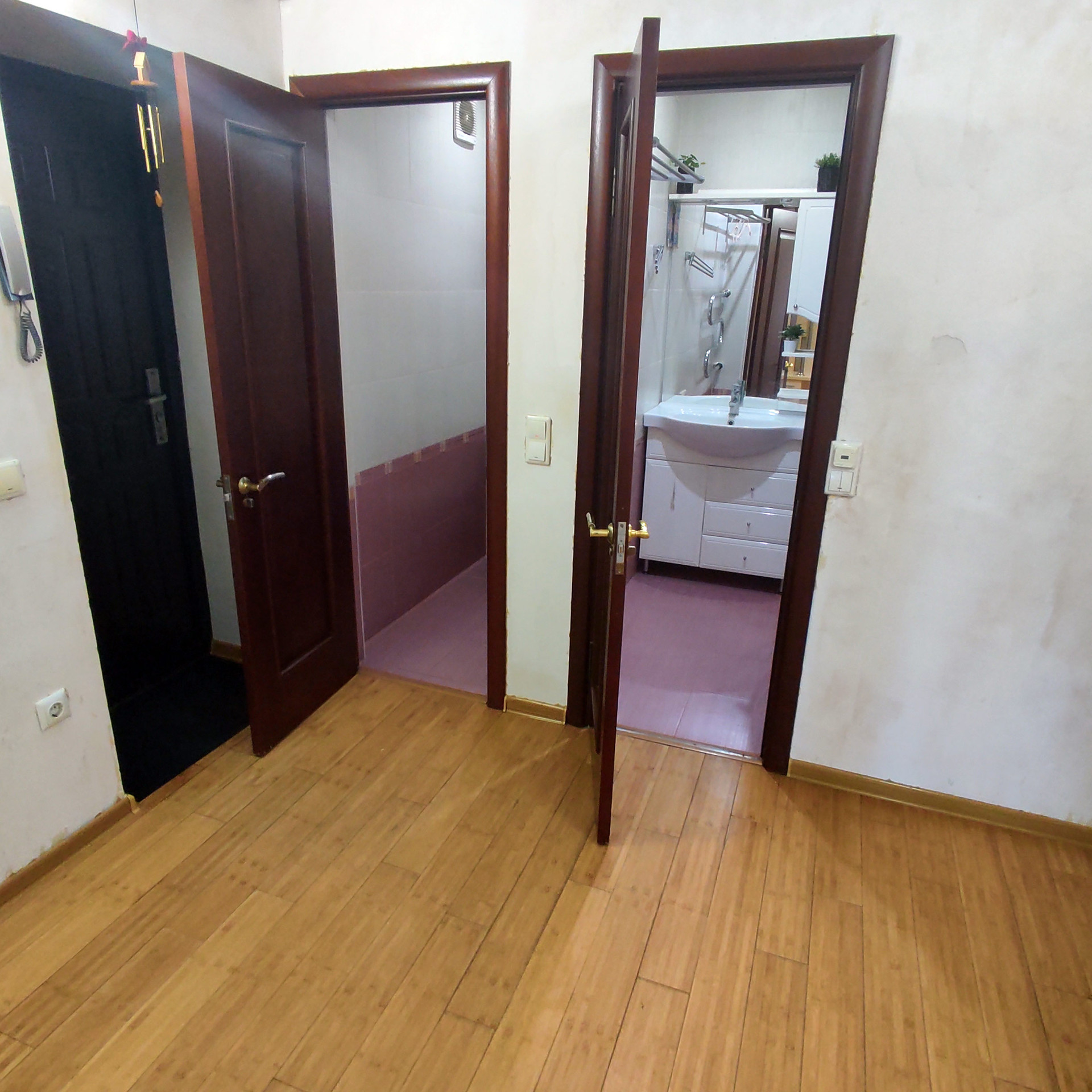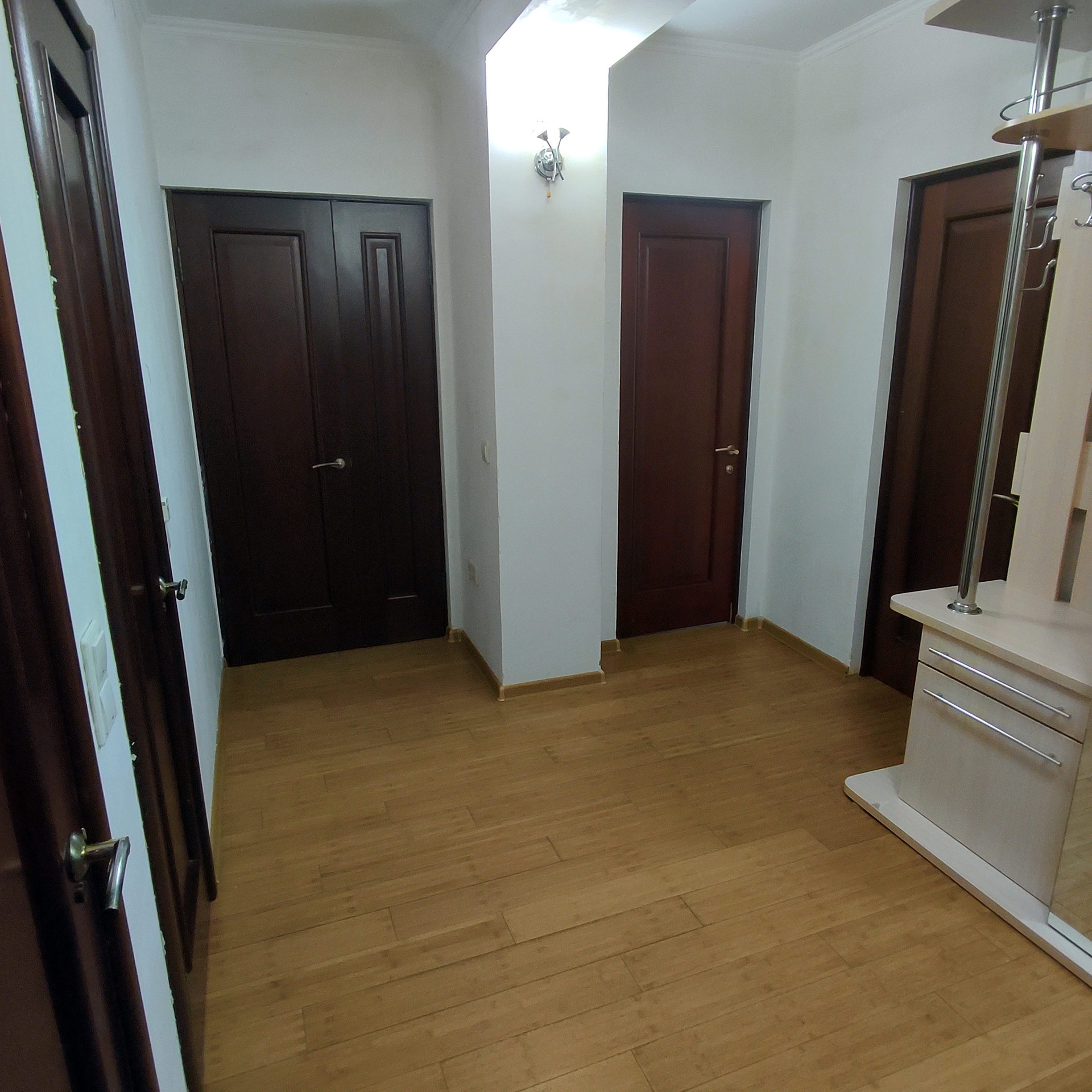 Во всей квартире хорошие полы из бамбуковой доски (не ламинат). Межкомнатные двери деревянные и качественные.