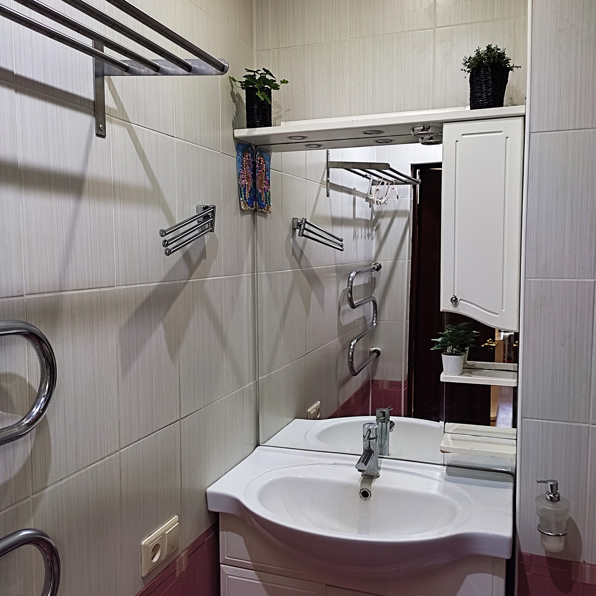Туалет и ванная раздельные, в плитке. В ванной пол с подогревом. Большая и дорогая душевая джакузи-кабина. Центральное водоснабжение, а также установлен водонагреватель, который подает воду и на кухню. Водяной счетчик до 2027г.