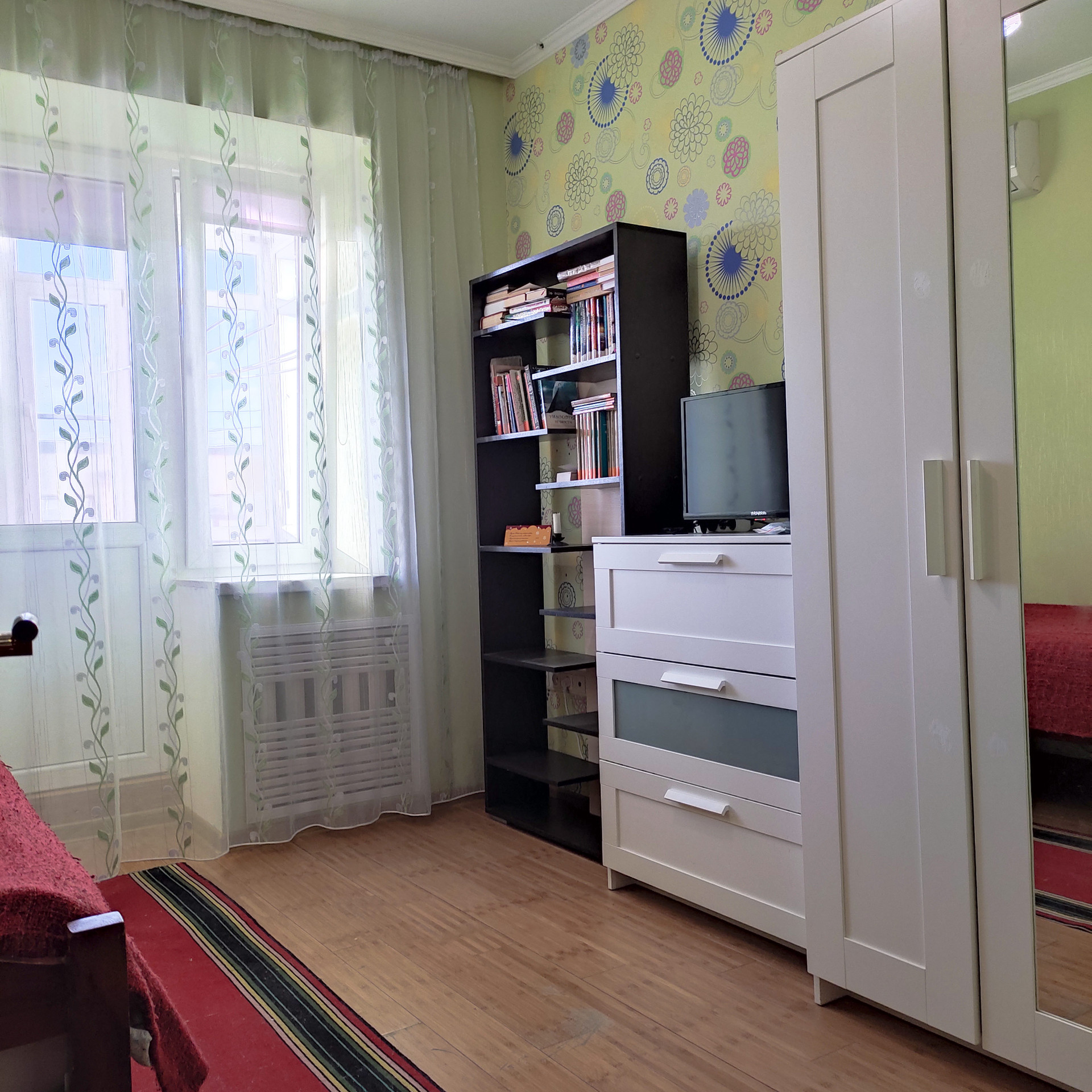 В квартире 2 застекленных балкона: один (2,8 м) с выходом из кухни и видом на двор, Лоджия (3 м) выход из спальни.