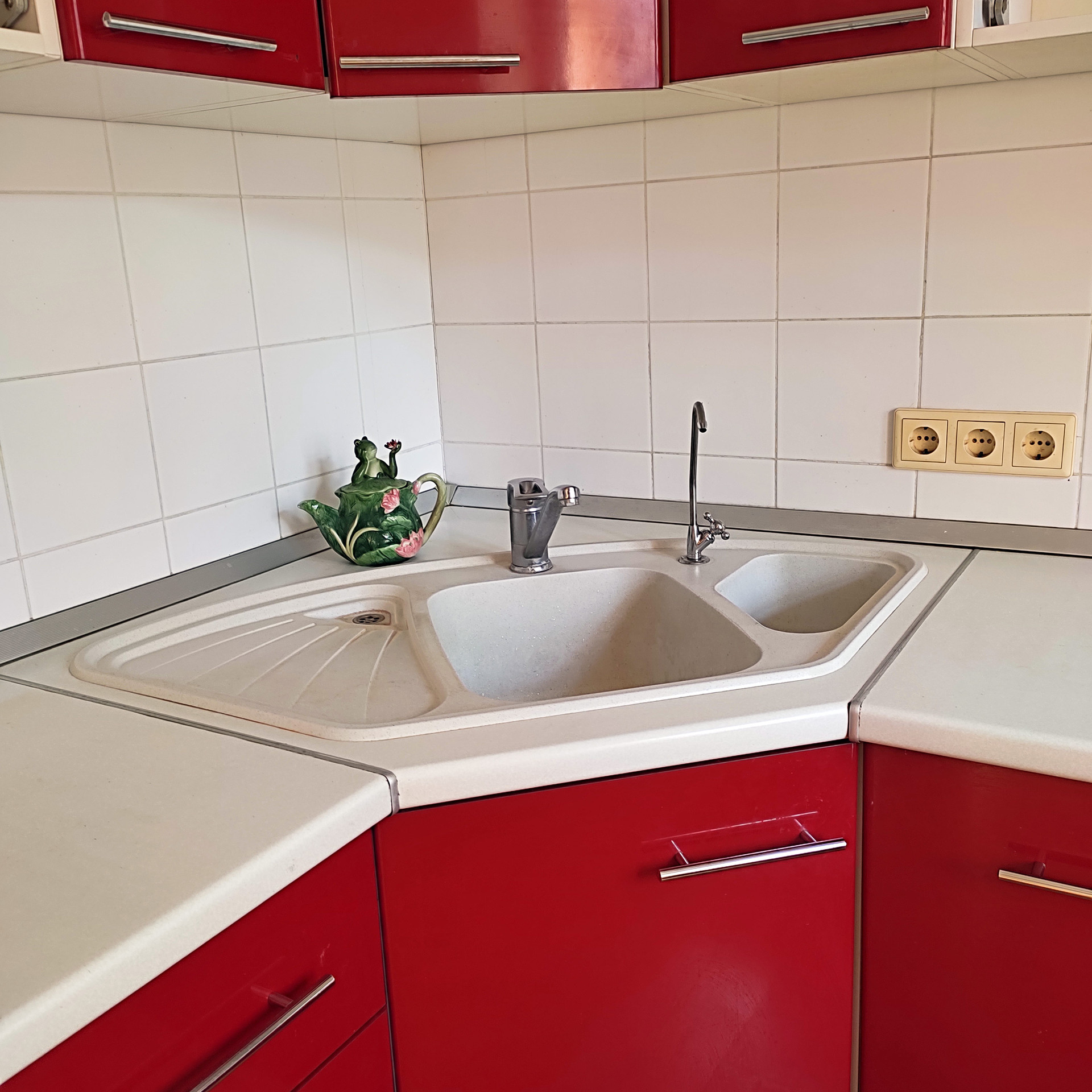 Удобная раковина, где установлен проточный питьевой 3-х ступенчатый фильтр.