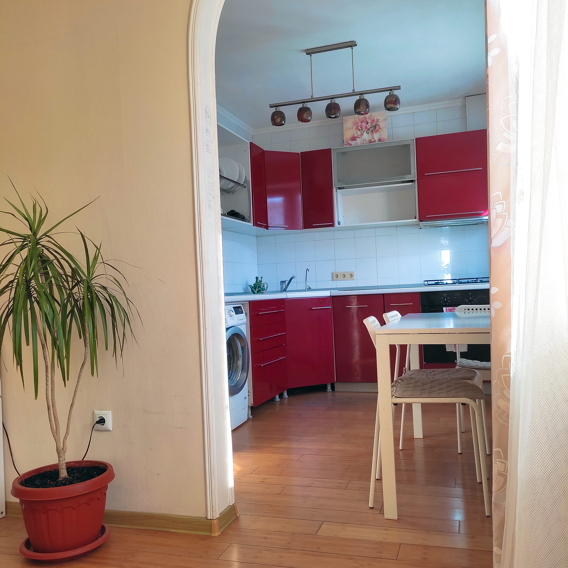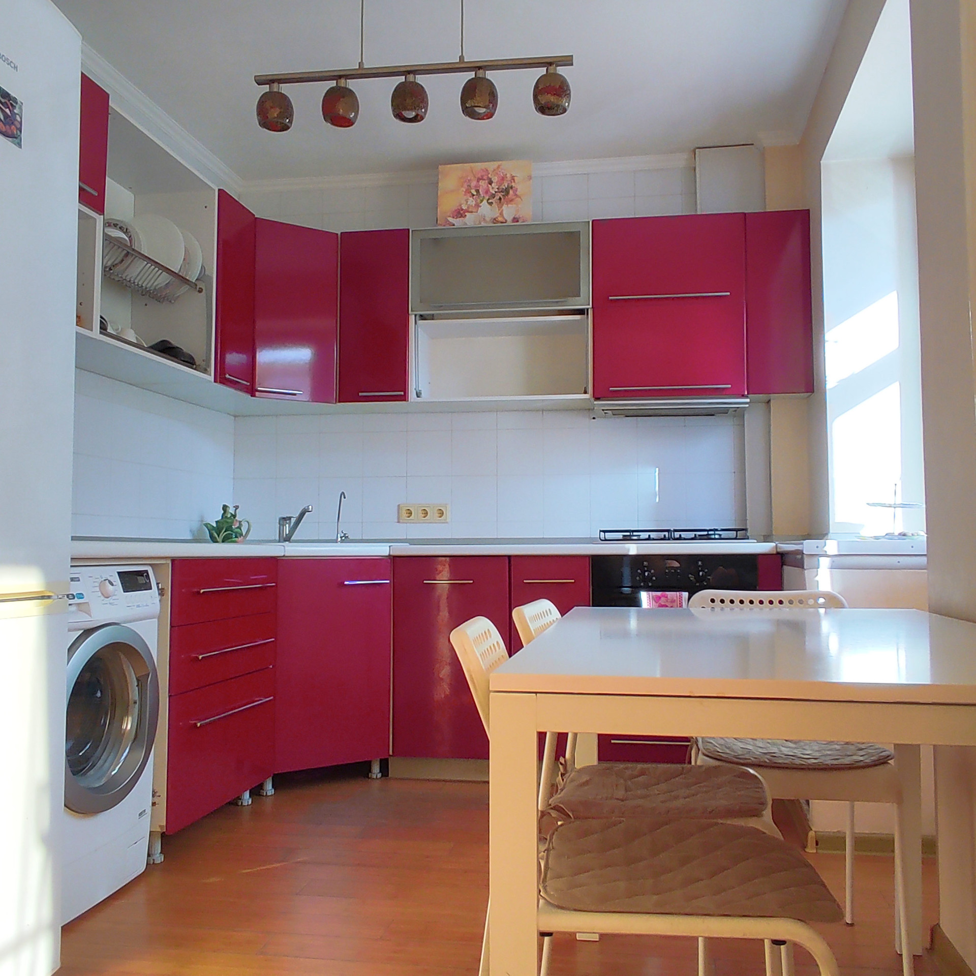 Кухонный гарнитур со встроенной Посудомоечной машиной BOHS, газовая плита BOHS и духовка/красивая и дорогая люстра под гарнитур /Встроенный проточный питьевой фильтр