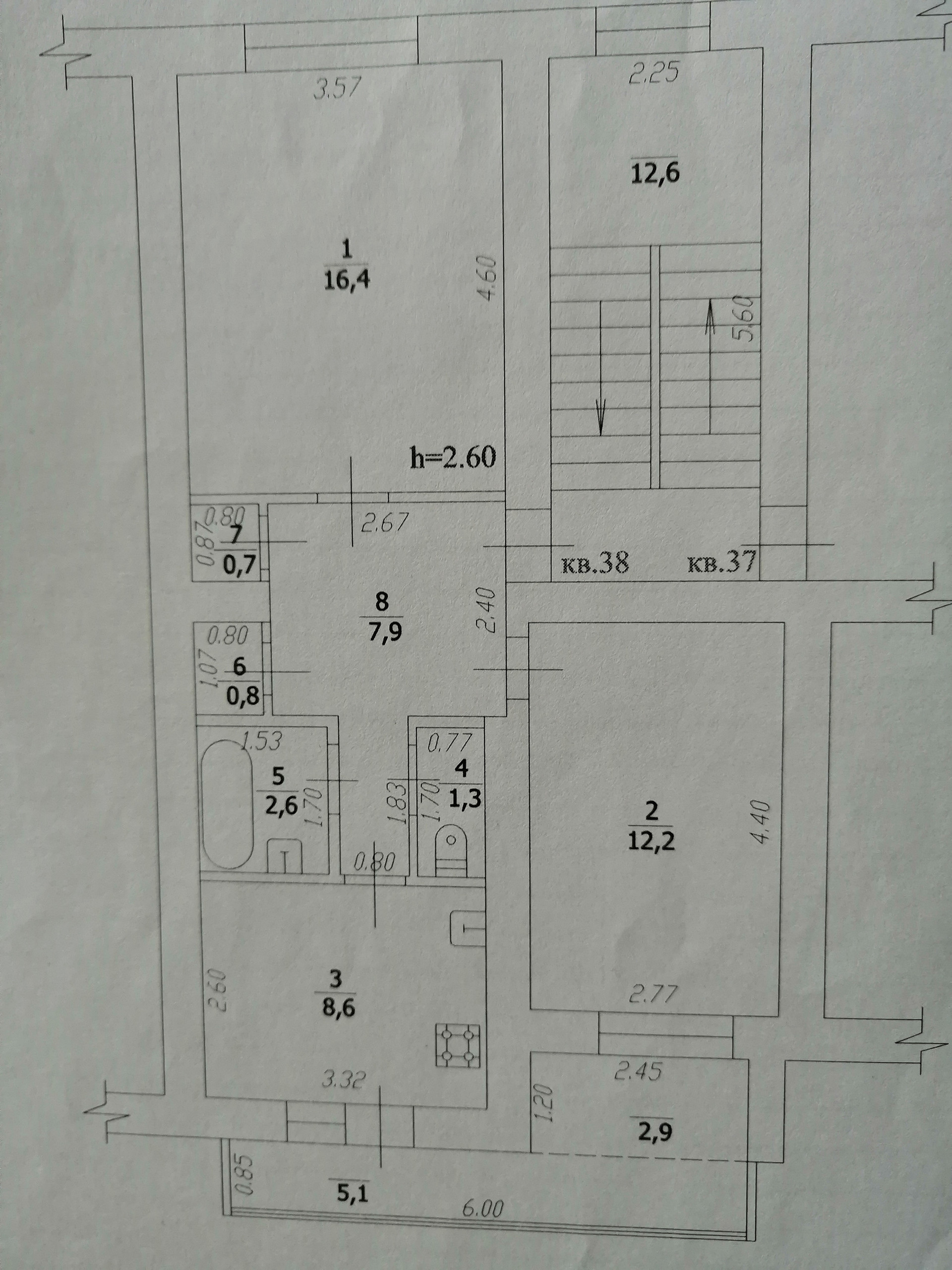 Высота потолков 2.6 м