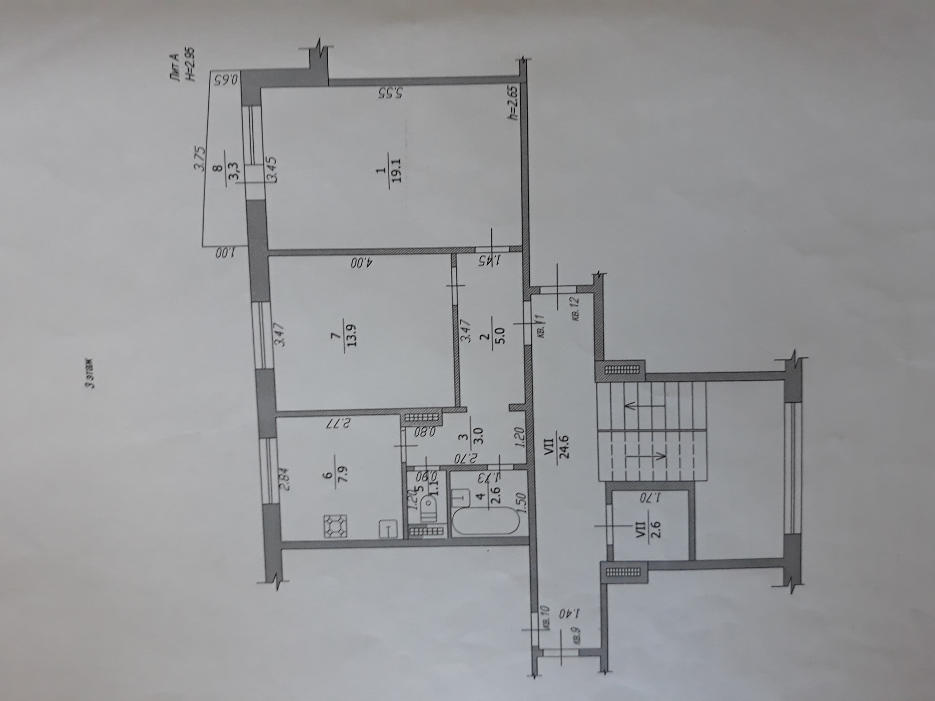 Высота потолков 2.6 м