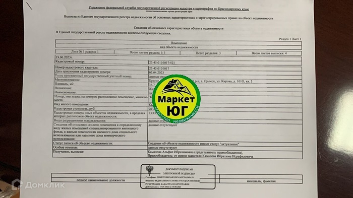 1-комнатная квартира, 36.7 м2, этаж 2 / 3, на продажу в Крымске, улица Кирова, 101