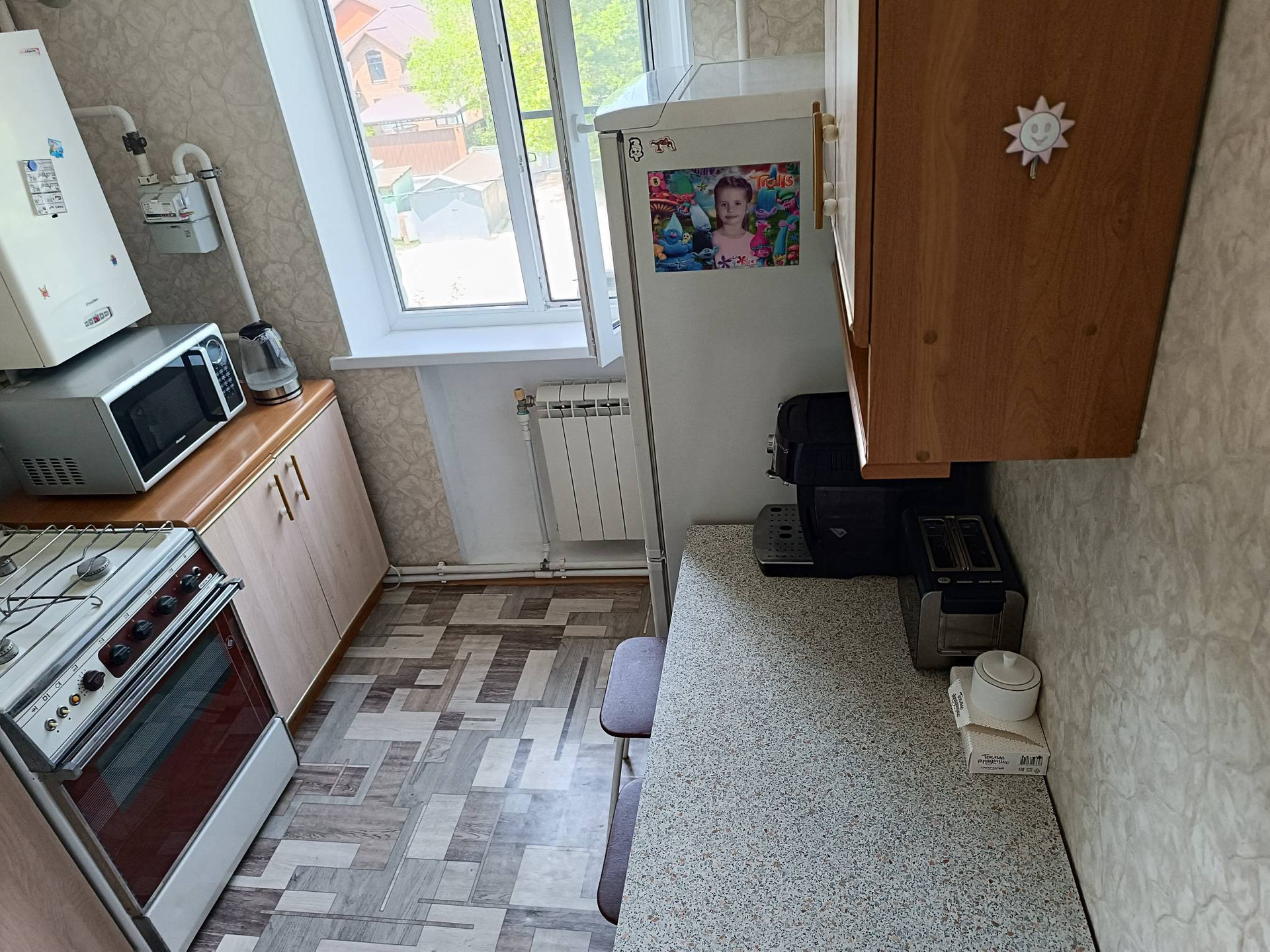 Расположение в самом центре города. Выполнен косметический ремонт, заменены окна, есть электрокотел, просторная кладовая и небольшой балкон с видом во двор