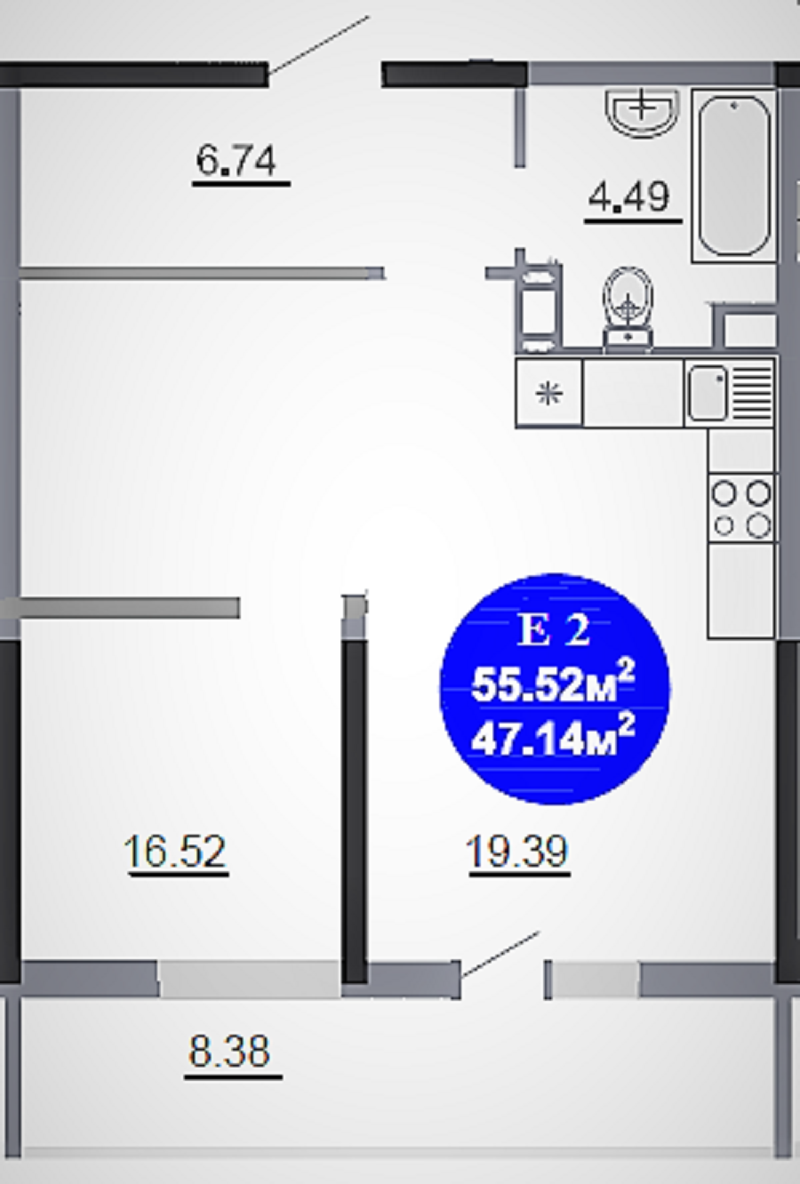 Общая площадь 55.52 м2