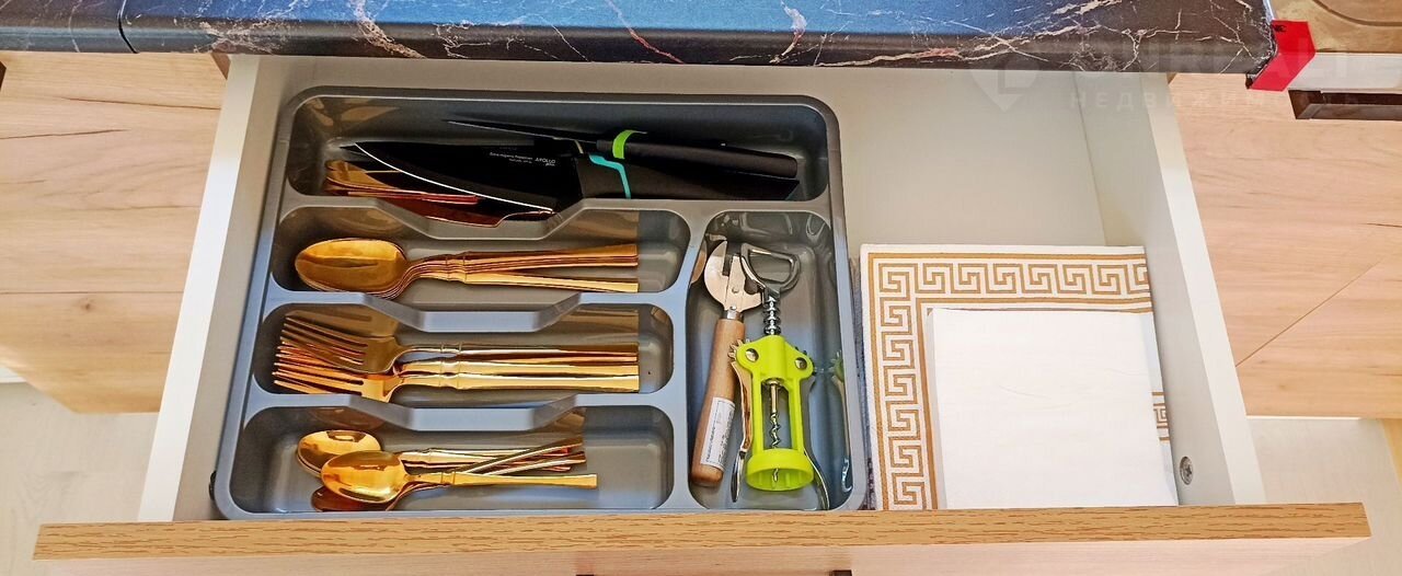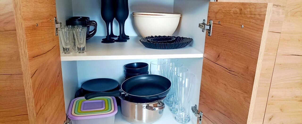 - Мини-кухня с раковиной, полным набором посуды и кухонной утвари для приготовления пищи и красивой сервировки.