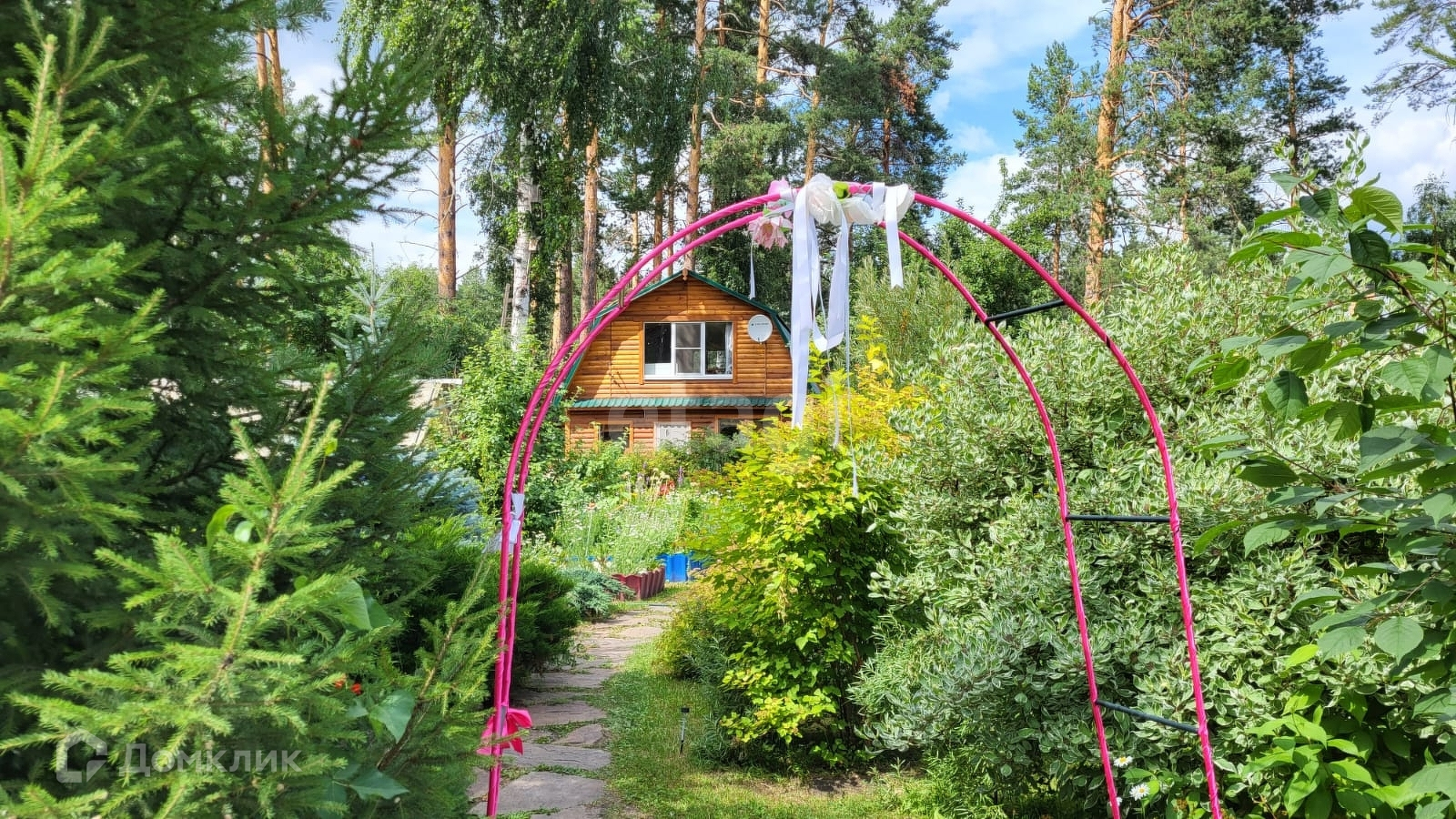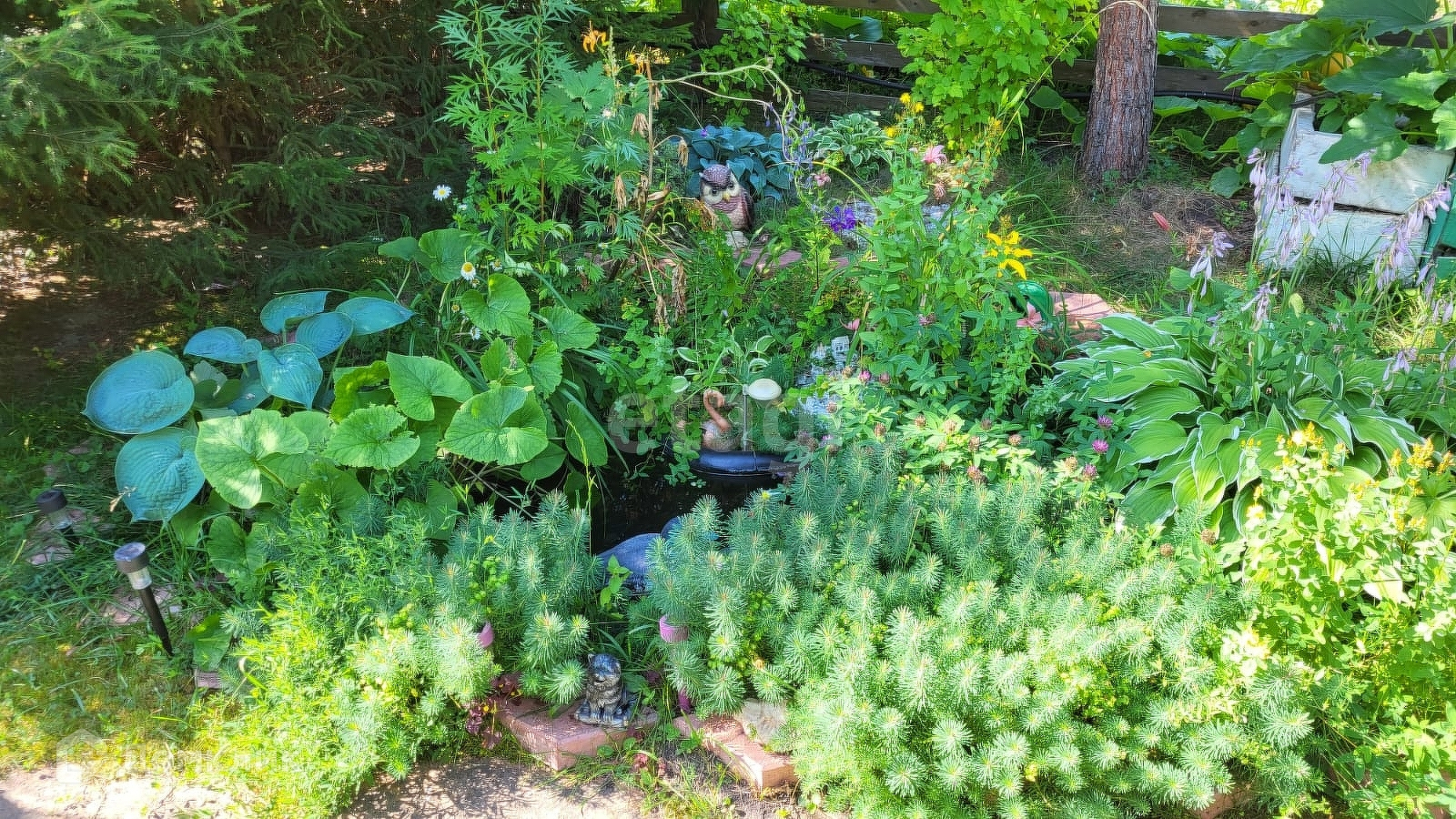 Земельный участок 6 соток и еще 2 под картошку. Есть теплица, и парники. Есть яблони, смородины, малинник, крыжовник, жимолость, слива, облепиха, а также имеятся ландшафтный дизайн с пихтами, голубыми и канадскими елями, гортензией, сиренью, туями итд Есть свой выход в лес, площадка под 3 машины и зона отдыха.