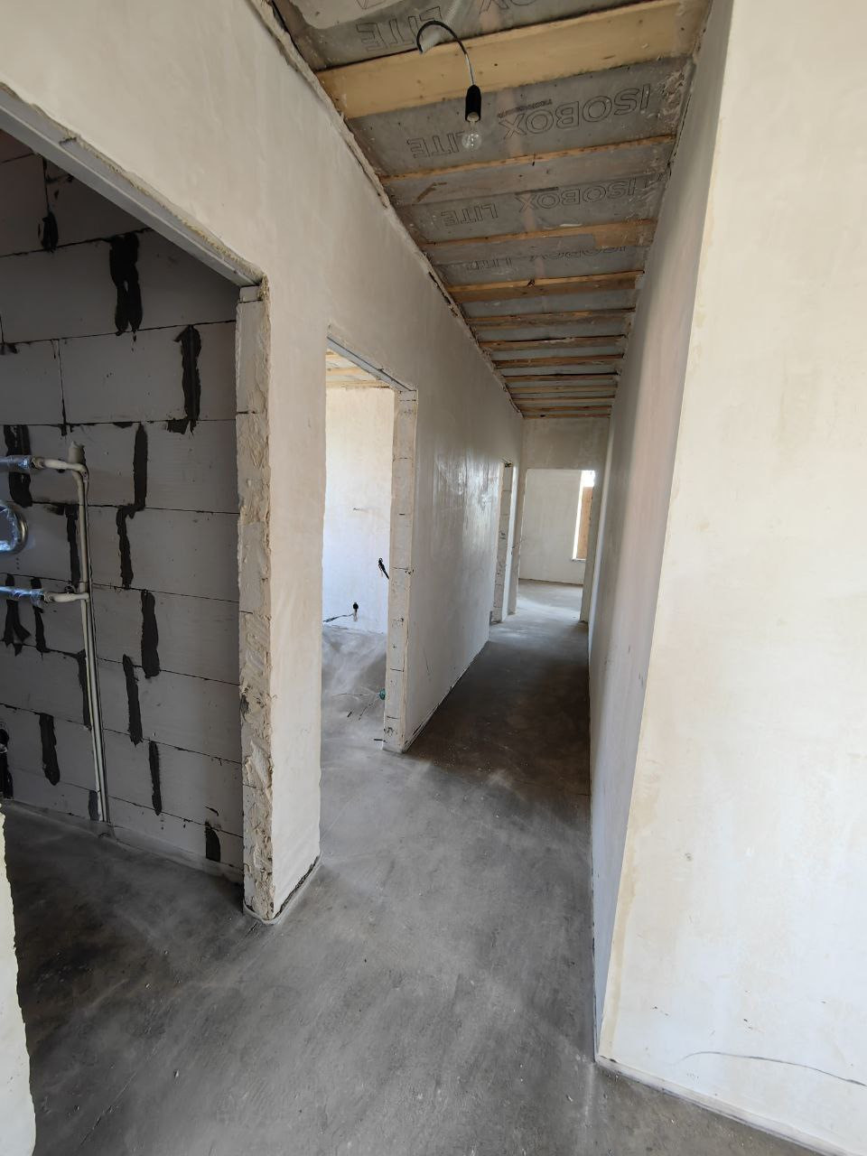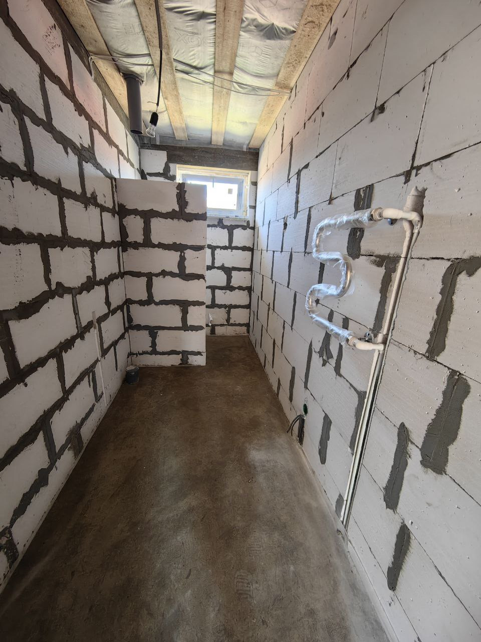 В доме сделана разводка электричества, отопления, установлены радиаторы, тёплый пол, установлен газовый котёл "Navien"