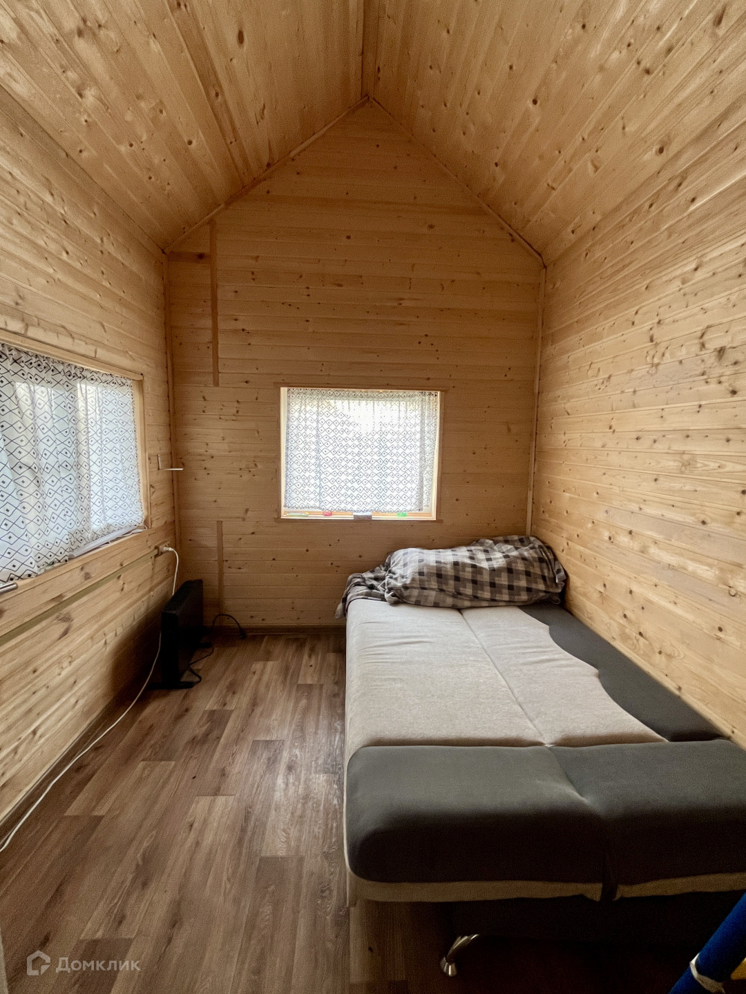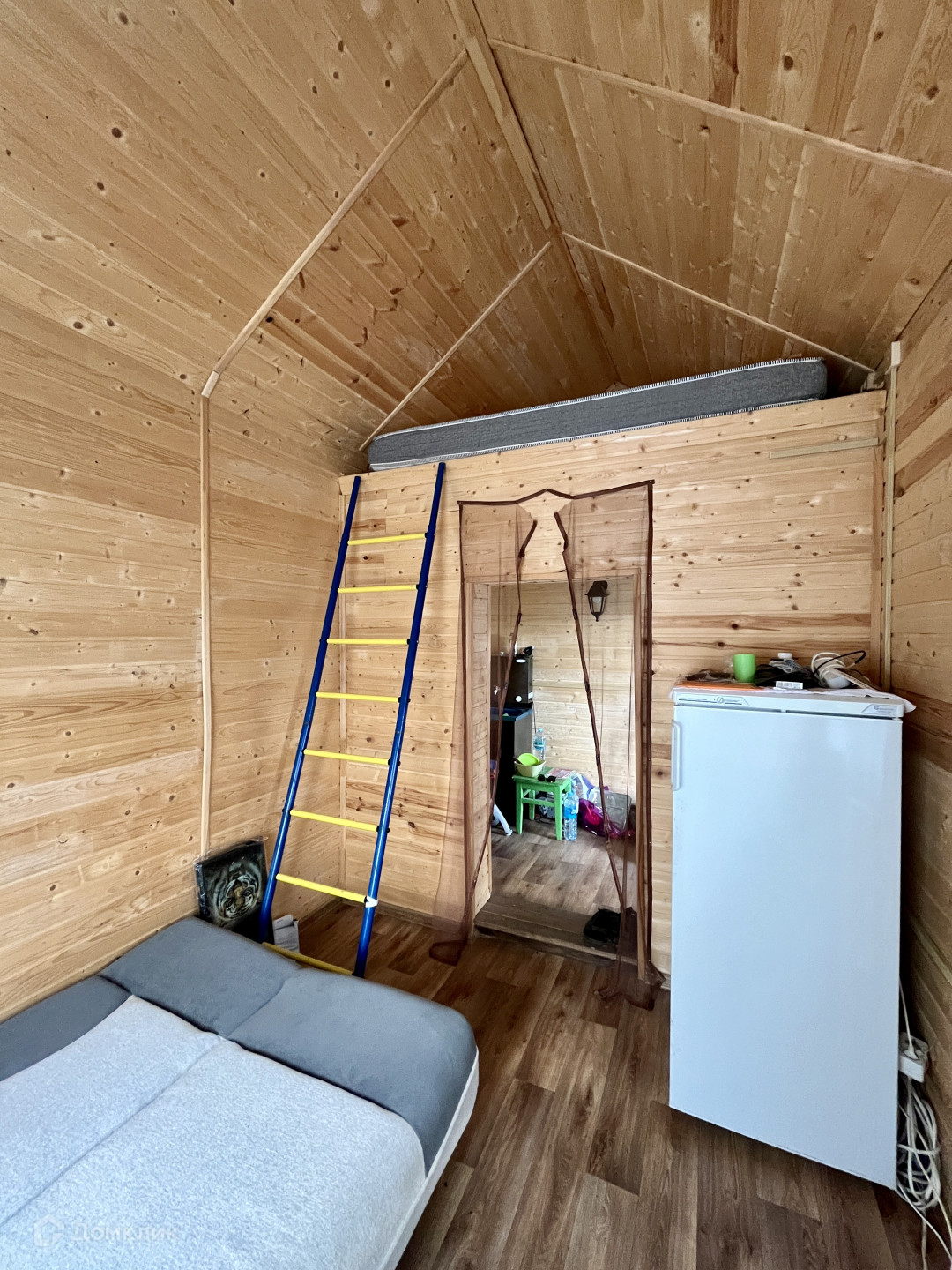 В доме уютная планировка, есть маленькая кухня, комната и спальное место на втором уровне, его особенно полюбят дети.