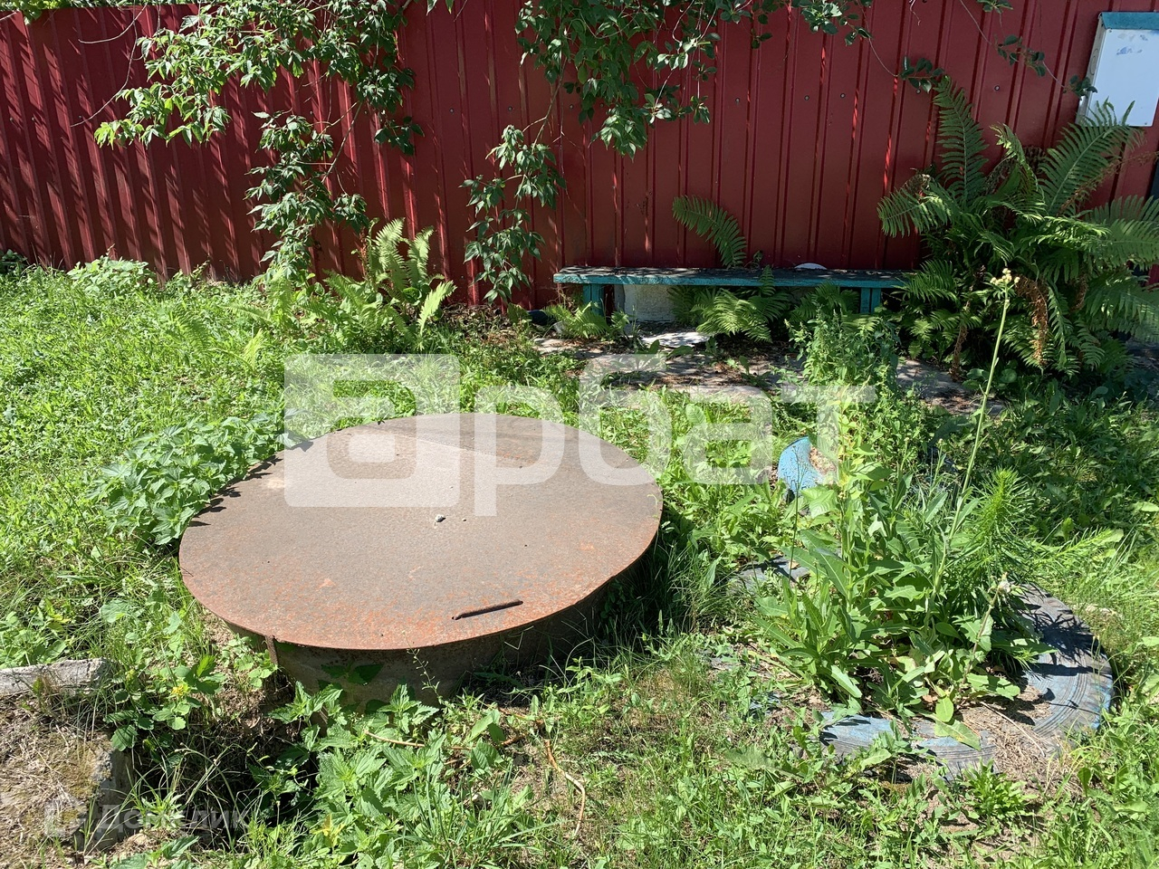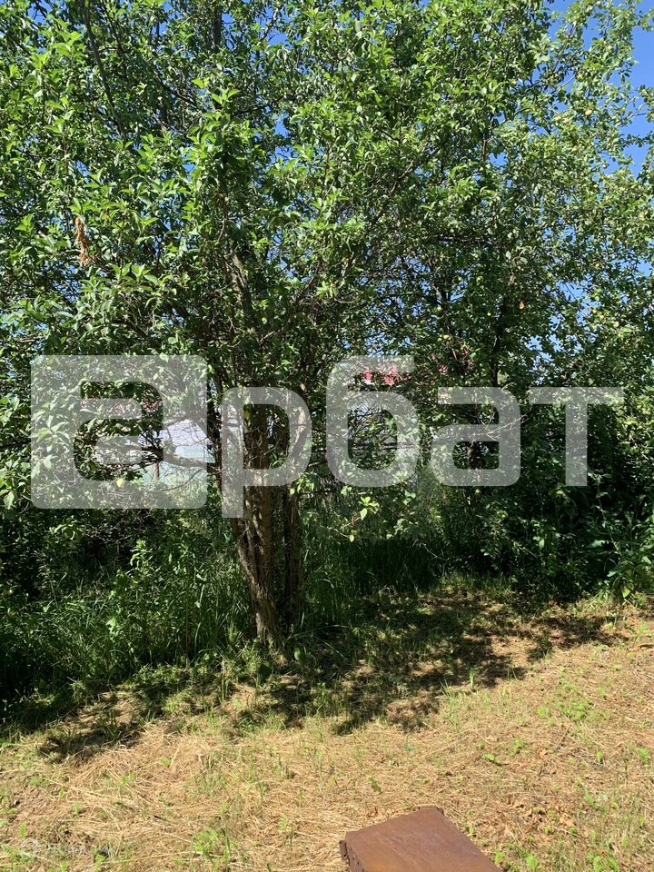 На участке растут плодовые деревья и кустарники, также есть теплица.
