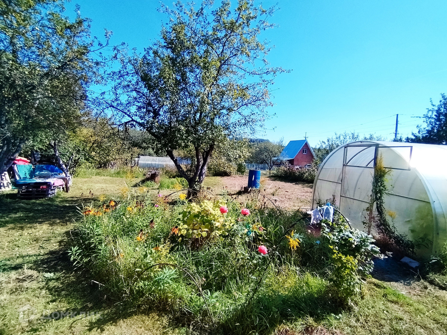На участке теплица.