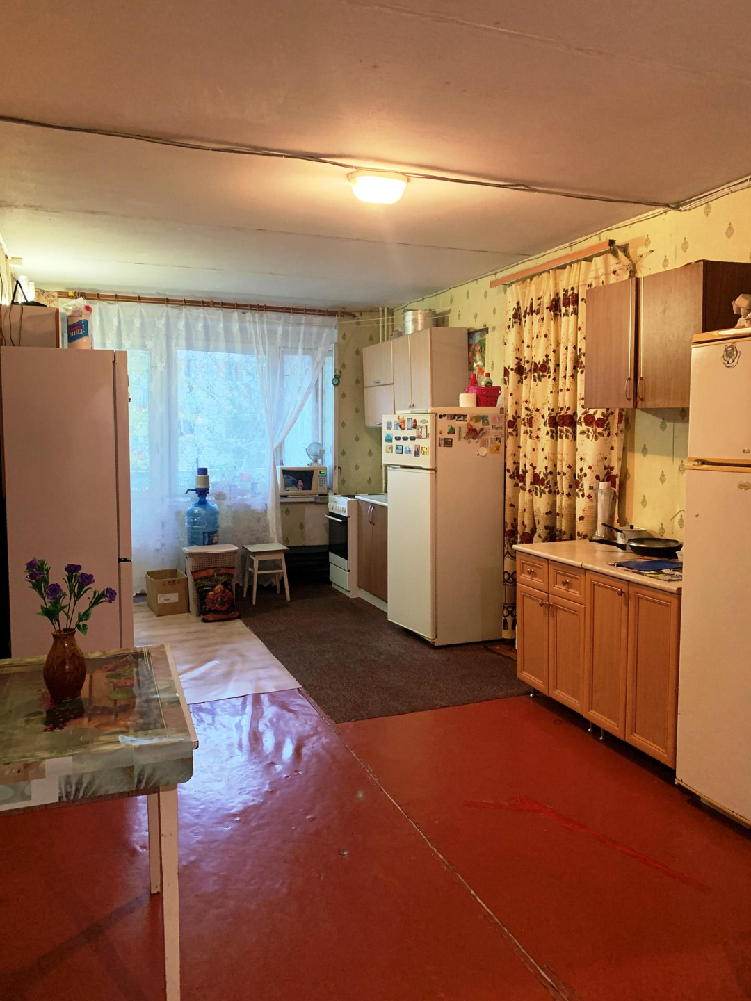 Чистая, светлая, теплая квартира, с хорошими (русскими) соседями. ( в двух комнатах живут по одному собственнику, в третьей ни кто не проживает)