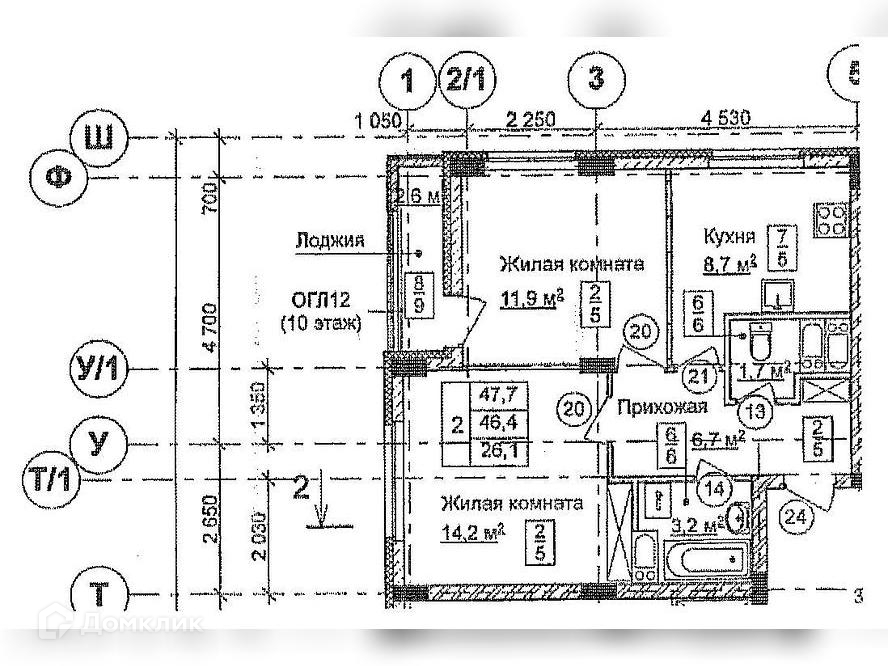Общая площадь: 46,4 кв.м