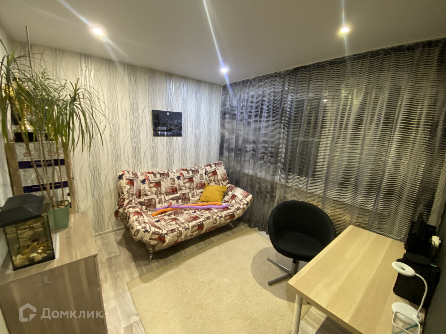 Квартира тёплая, светлая. Чистые смежно-изолированные комнаты, натяжной потолок по всей квартире, хорошие межкомнатные двери, встроенный просторный шкаф. На полу качественный линолеум и ламинат. С/у совмещен в кафеле. Окна пластиковые. Имеется просторный сарай.