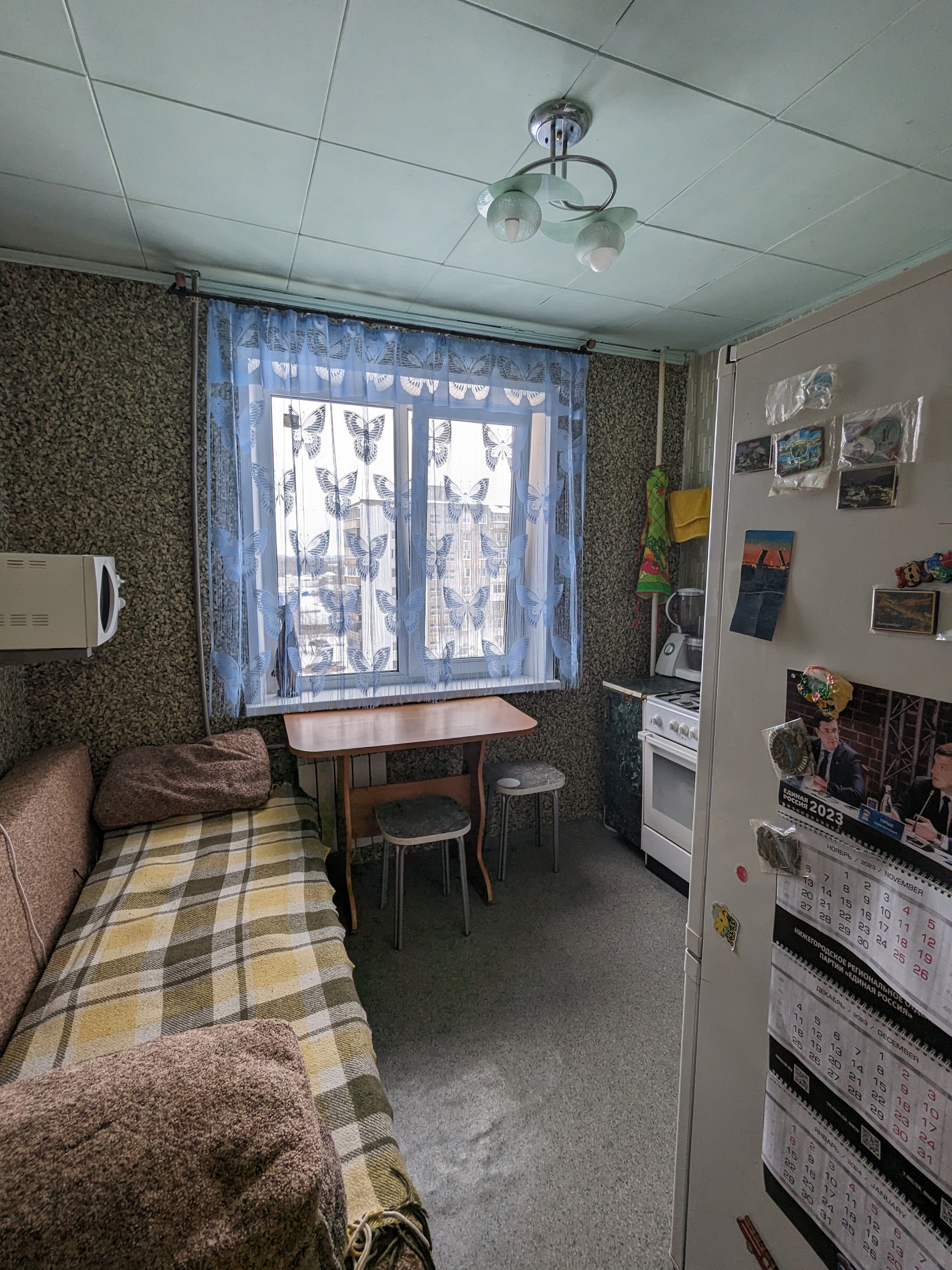 Счетчиков нет. Пластиковые окна. Вид во двор. Из мебели останется только кухонный гарнитур.