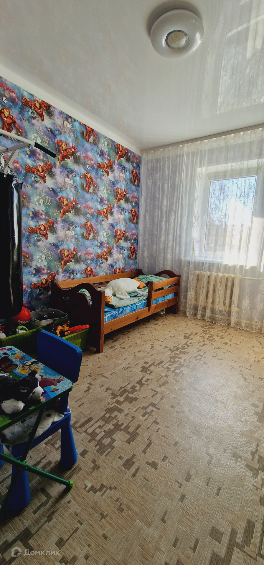 Во всех комнатах сделан ремонт ,на полу линолеум  , натяжные потолки, поменяны все окна на пластиковые. Частично остаётся мебель. В подъезде чисто ,доброжелательные соседи.