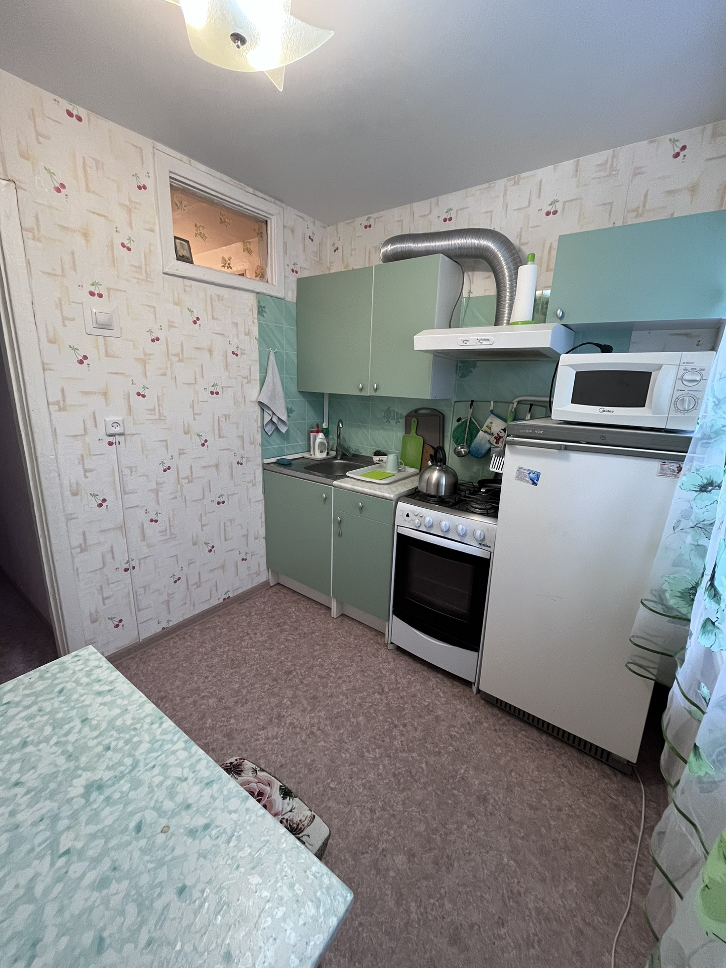 Остается кухонный гарнитур, шкафы, холодильник,прихожая.Тихий двор.Один взрослый собственник.