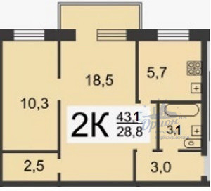 Общая площадь 43.1 м2