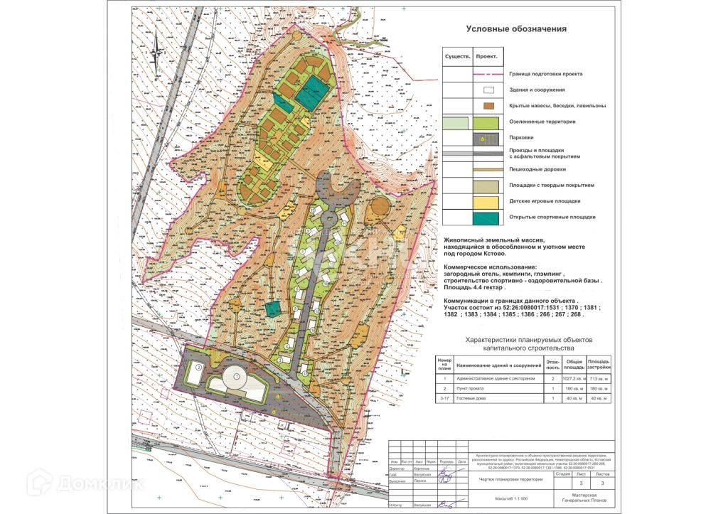 В продаже участок   площадью 4,4 га. Кадастровый номер участка: 52: 26: 0080017: 1531, категория земель: земли населенных пунктов. Разрешенное использование: для индивидуального жилищного строительства.   Все коммуникации проведены. Обременений нет. Дорога хорошая с круглогодичным подъездом. Место тихое и уединенное, идеально подходит для открытия собственной базы отдыха, глэмпинга, кемпинга. Рассмотрим всех индивидуально.   Звоните.