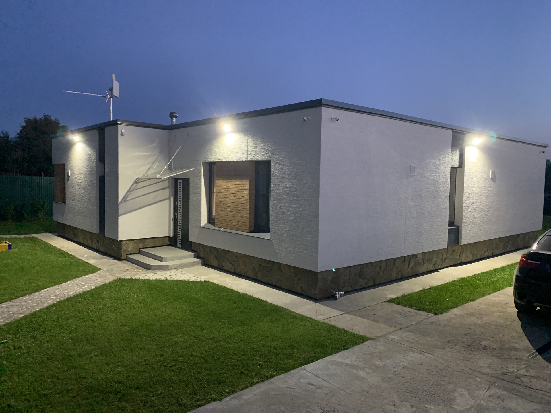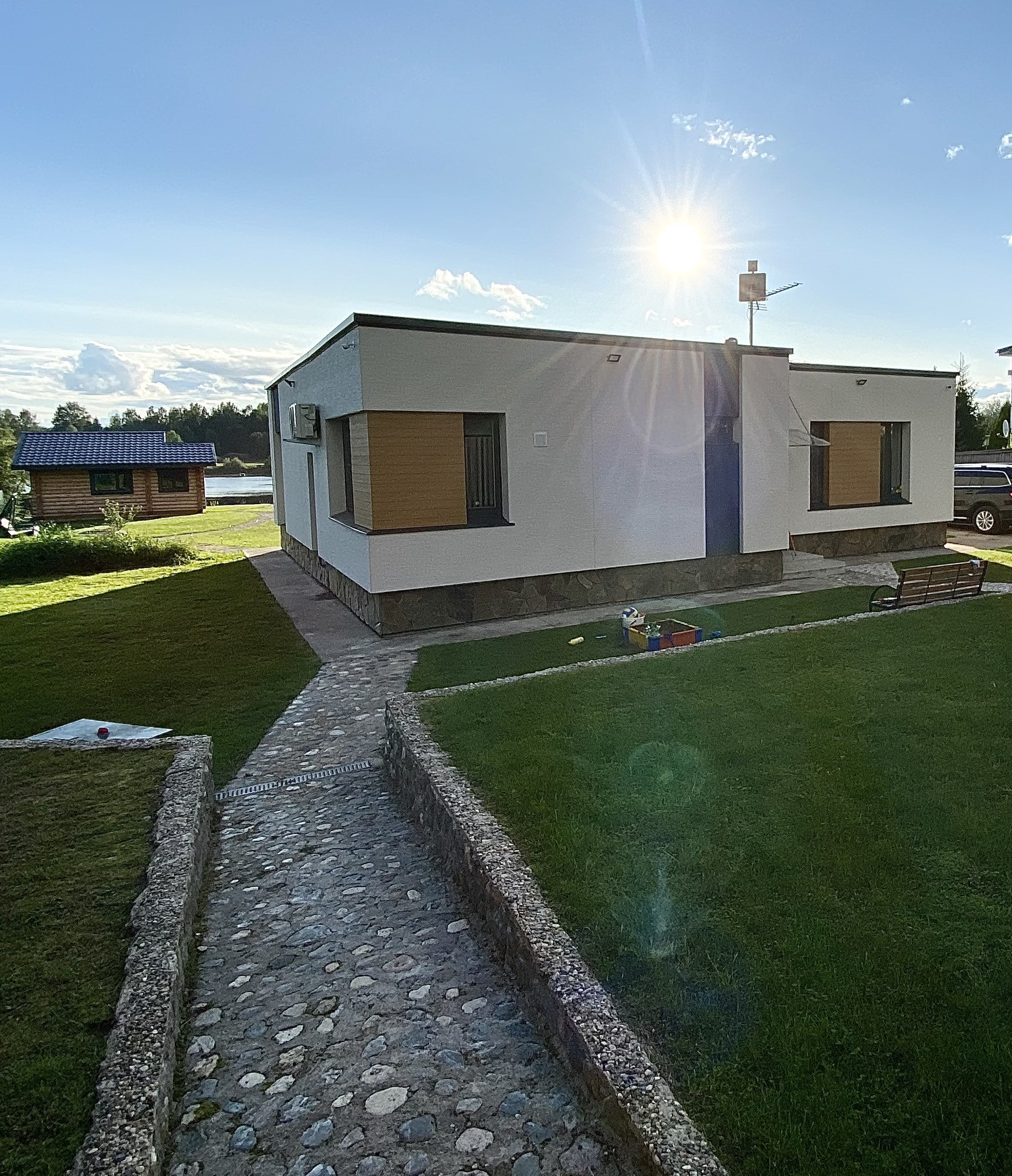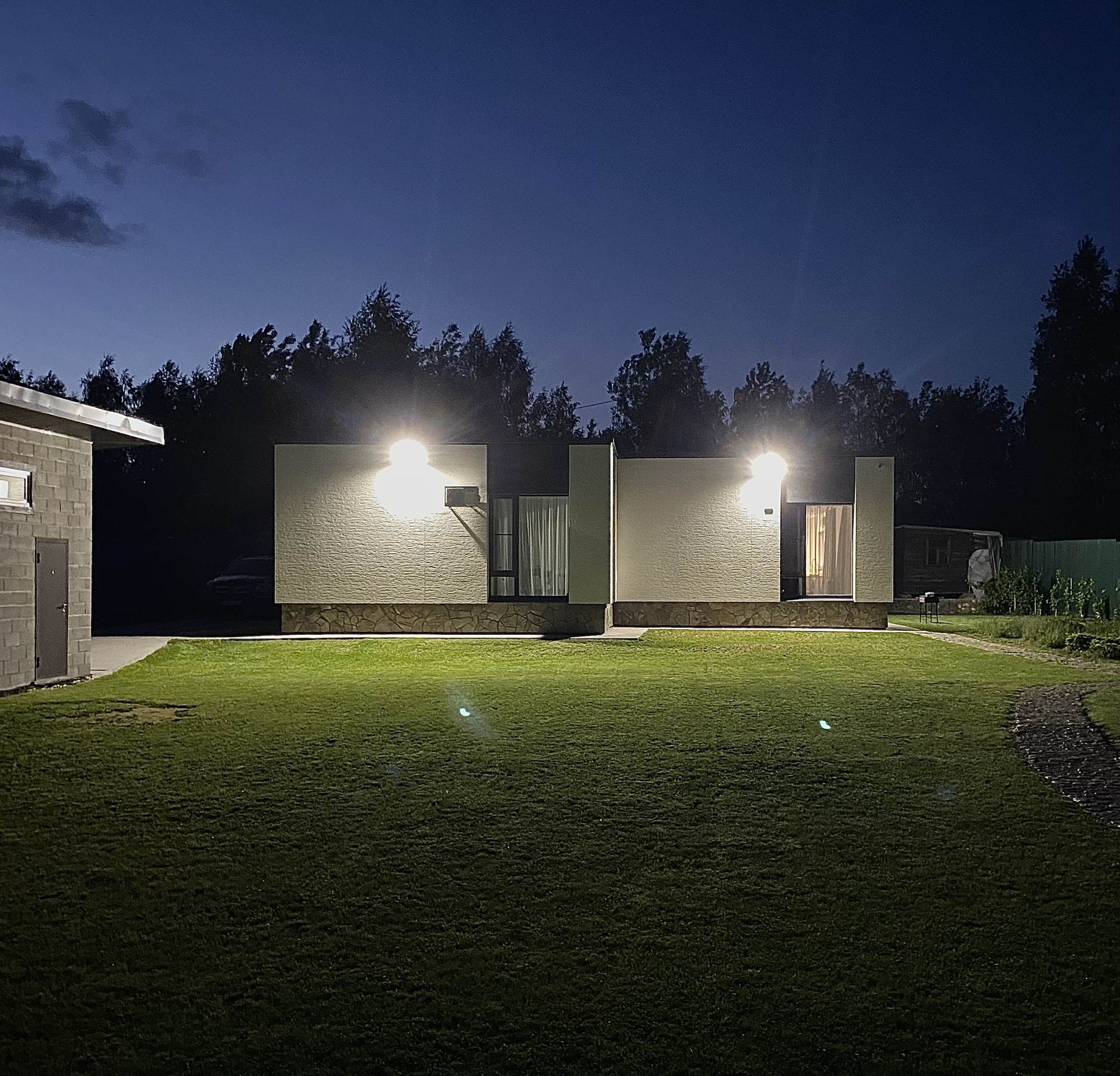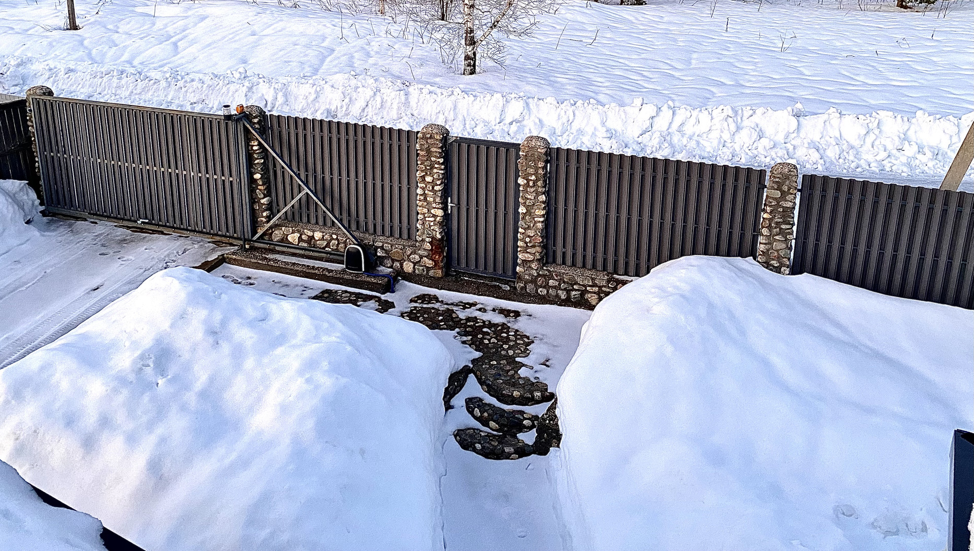 ✔газон, каменные дорожки, забор с автоматическими воротами