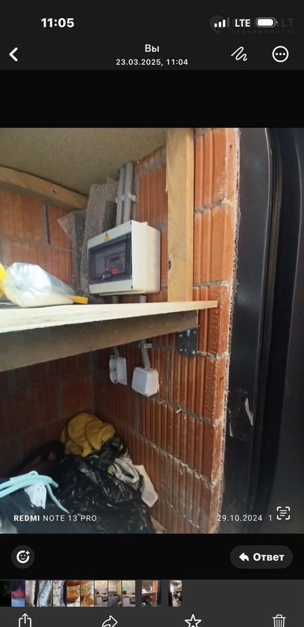 Кладовка 2,7м2 . Сделаны стеллажи, отделка до потолка фанерой 18мм. Дверь переустановлена наружу. Выведены автоматы и розетки. Пол плитка мозайка. Рядом есть краны холодной и горячей водой. Кладовка по расположению в доме(красной меткой)