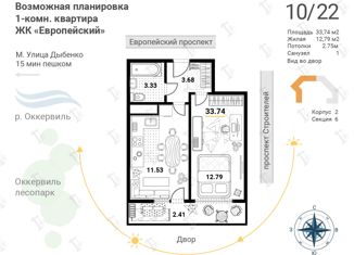 Продажа 1-комнатной квартиры, 33.74 м2, Европейский проспект, 22