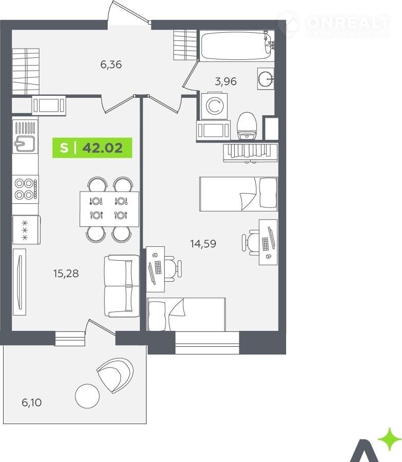 Общая площадь 42 м2