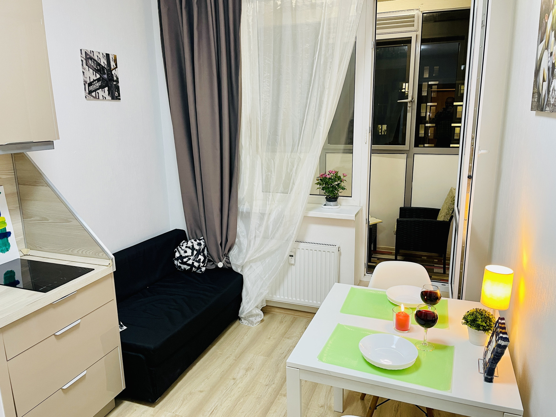 - проходная (дверь и в спальню и в кухню)
