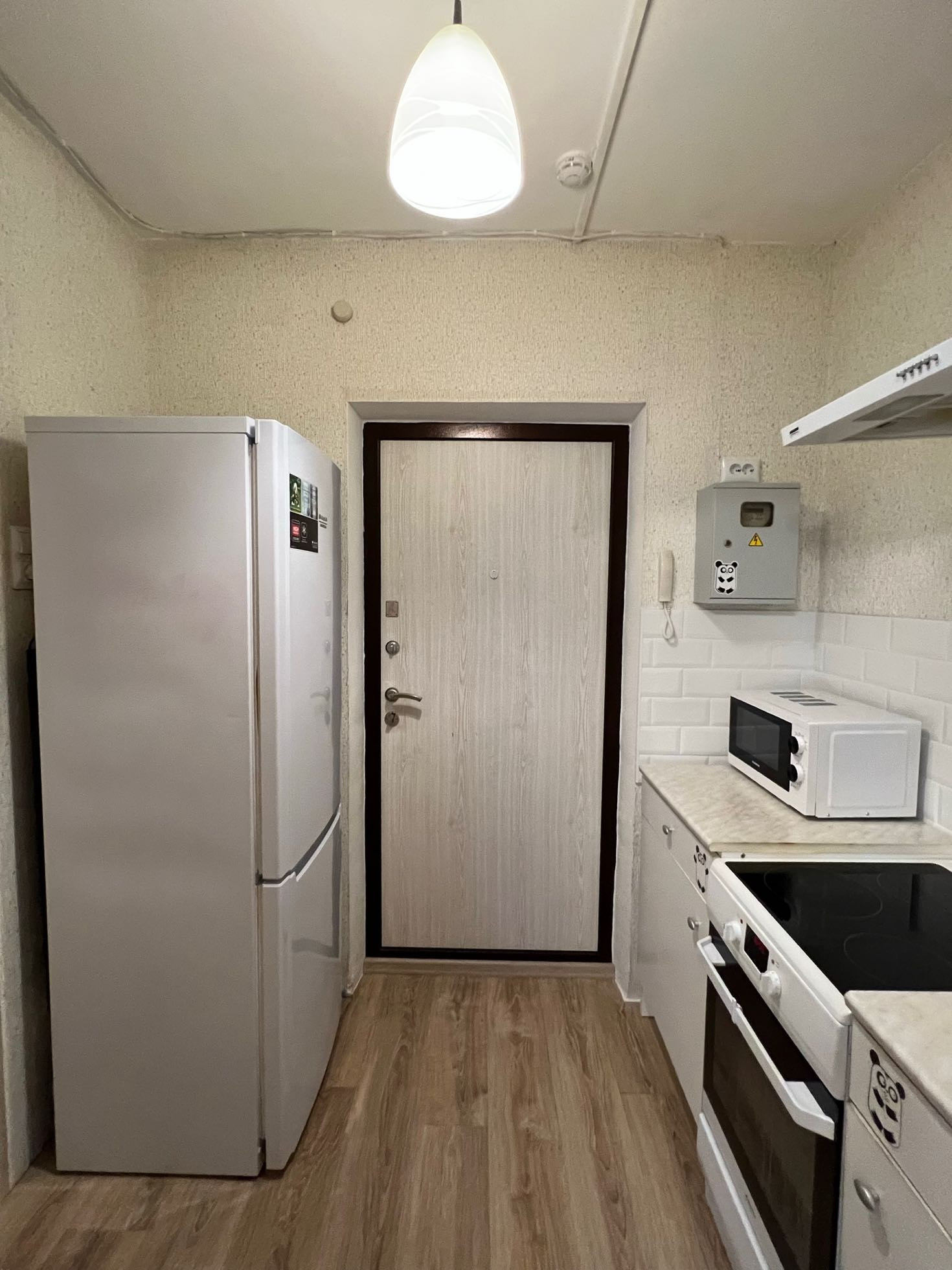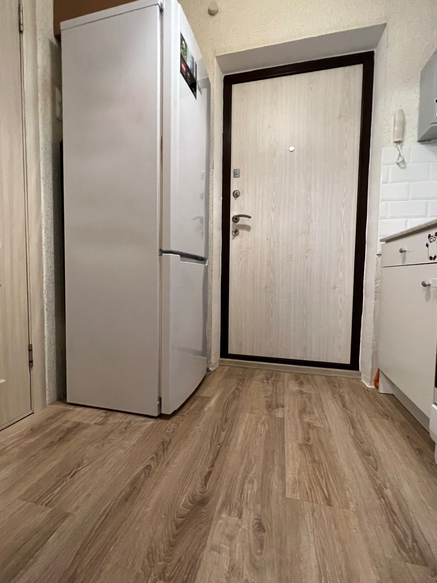 Кухня сейчас вынесена в коридор, при этом кухню легко можно