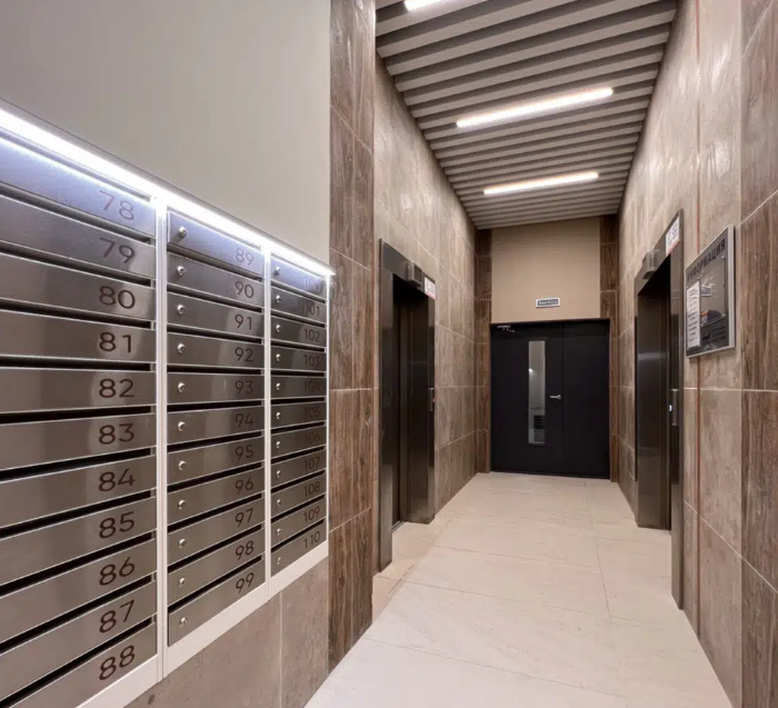 На 1м этаже Площадь в 200 м2 Для общего пользования,отдыха и нетворкинга,так же кофейня и бесплатный вайфай и зона для детского отдыха, все это в бесплатном доступе жильцов данного дома 24 часа в сутки.