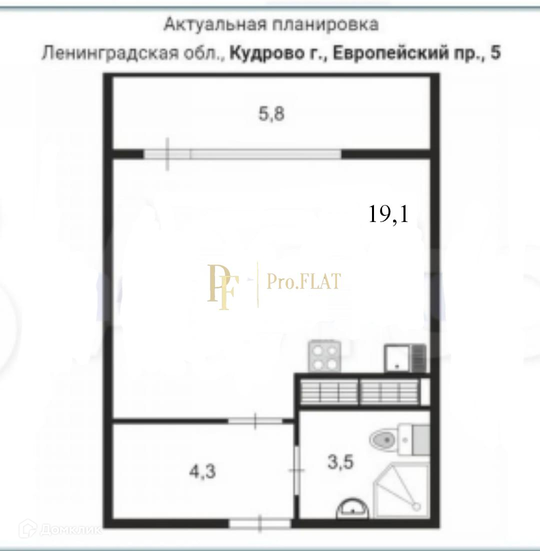 Квартира студия, 26 м2, этаж 5 / 14, на продажу в Кудрово, Европейский проспект, 5