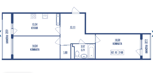 Общая площадь 62.1 м2