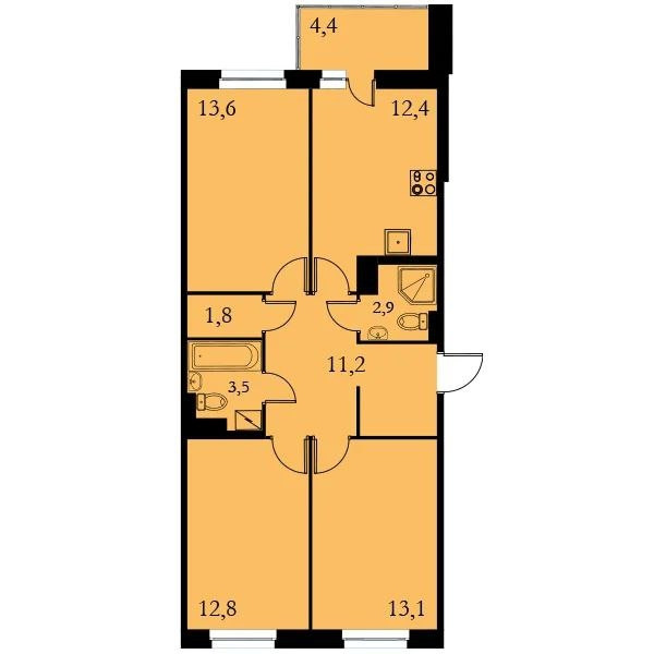 Площадь кухни 12.4 м2