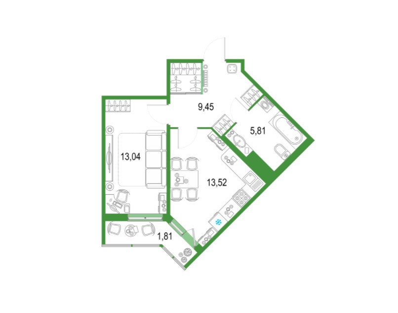Площадь кухни 13.52 м2