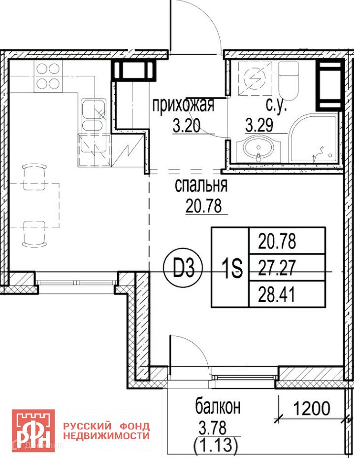 Общая площадь 27.27 м2