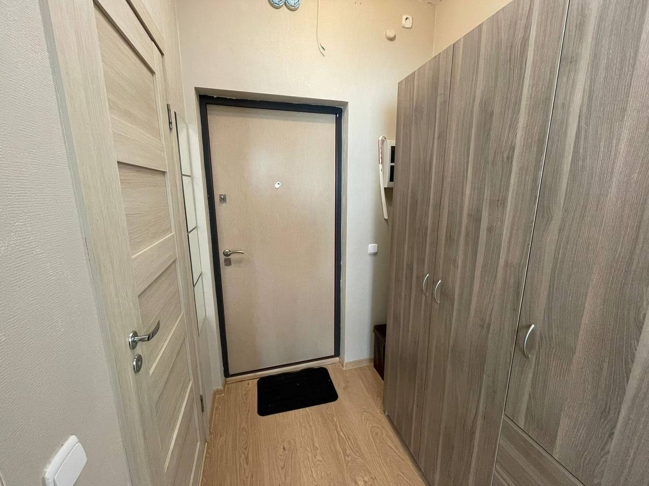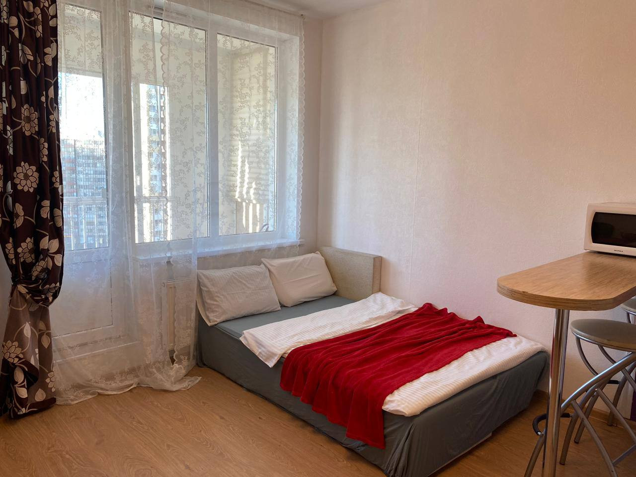 Студия расположена на 11 этаже 12-ти этажного монолитного дома с хорошей шумоизоляцией и теплоизоляцией.
