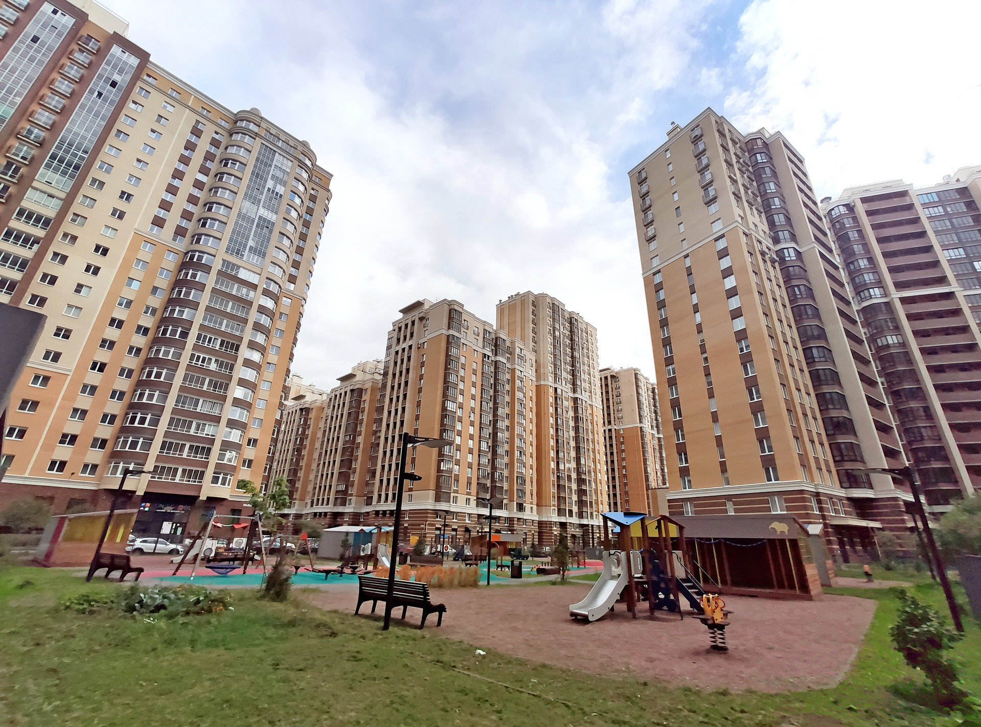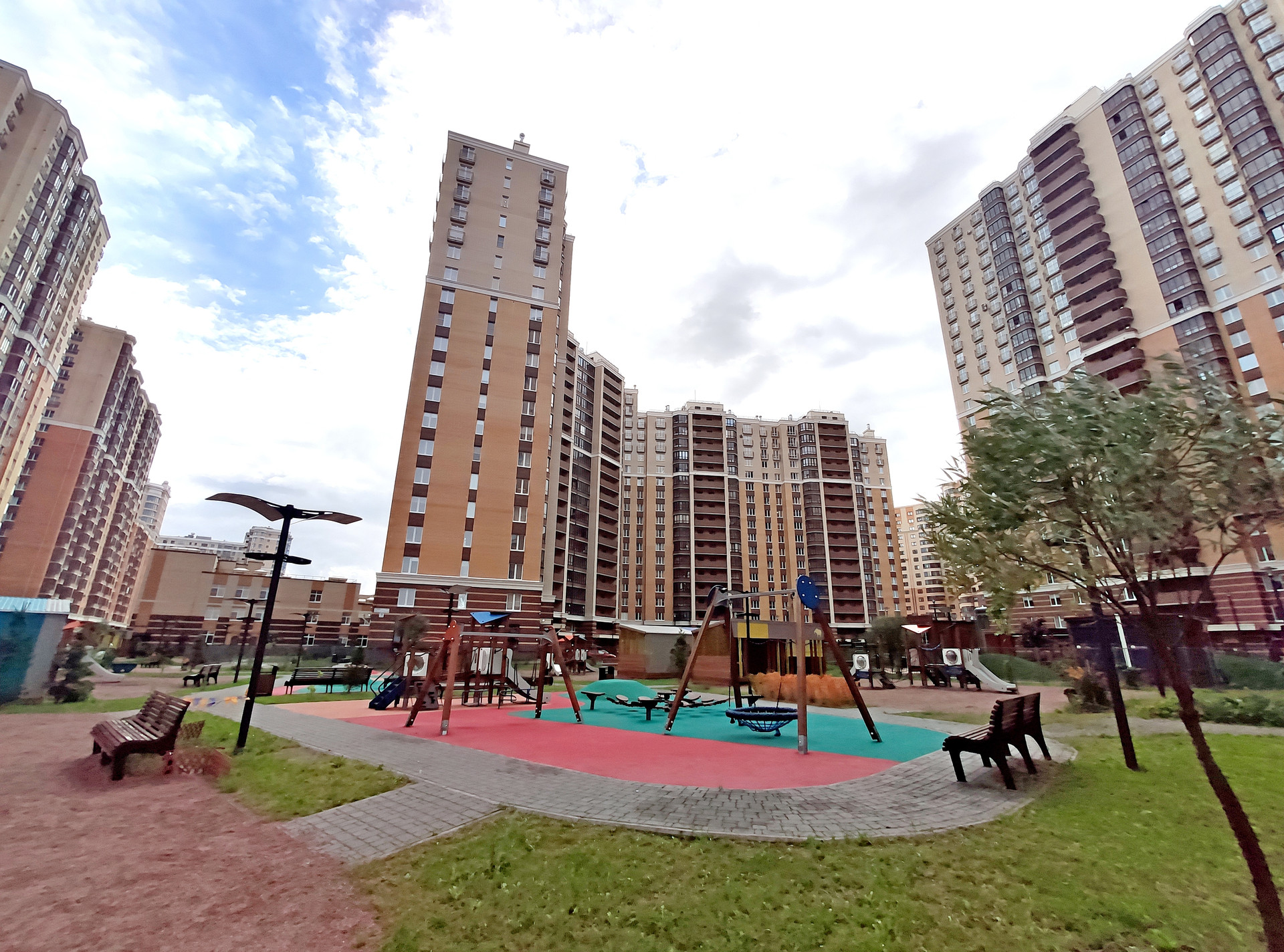 Во дворе дома лучшая в районе общеобразовательная школа, оснащённая просторными компьютерными классами и бассейном, детский сад, вдоль дома - парк с клумбами и зелёными насаждениями, просторная детская площадка с безопасным покрытием и тренажёрами для детей и взрослых!