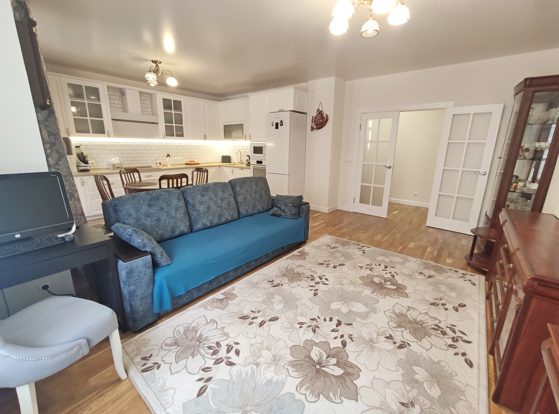 Изюминкой квартиры является качественный евро-ремонт (натяжные потолки, тёплый пол в СУ и душевой кабине, качественный паркет) и комфортная планировка: просторная кухня 13.67 кв.м., гостиная 16.35 кв.м., изолированная комната 12,86 кв.м., сан.узел 4.39 кв.м. с качественной душевой кабиной, застеклённая лоджия 3,23 кв.м., вместительная гардеробная 2,01 кв.м.!